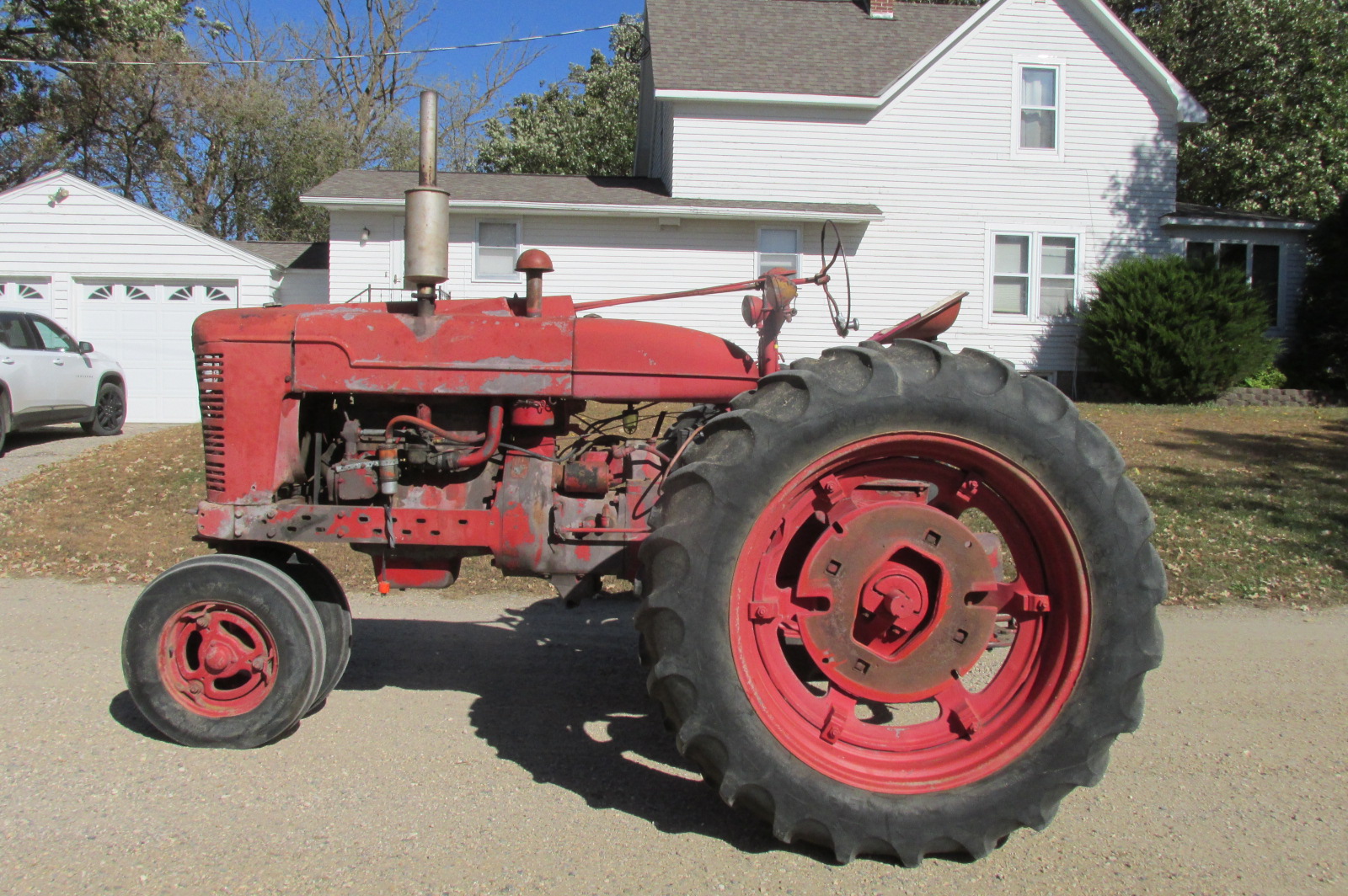Farmall M tractor with 12 volt system.New Battery.Generator charges and lights work.Rear wheel weights.