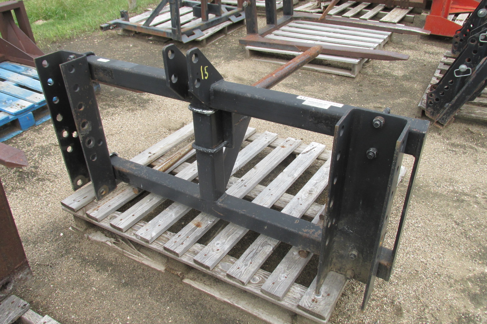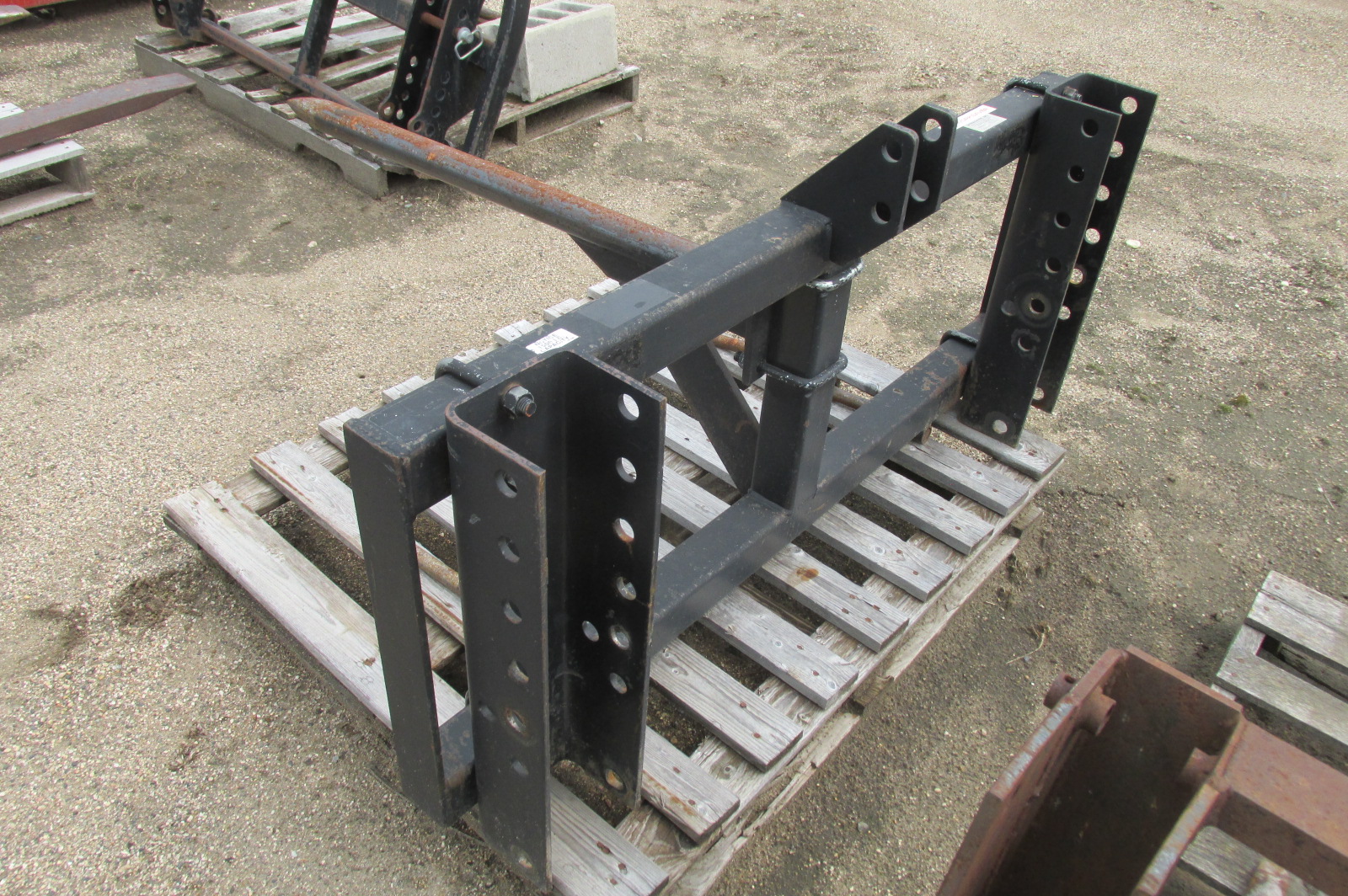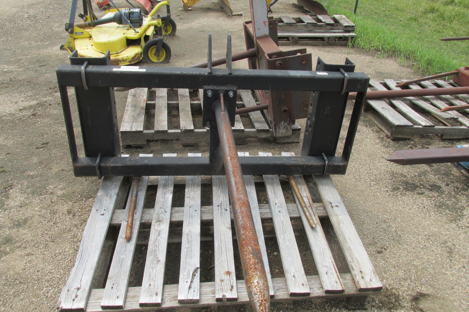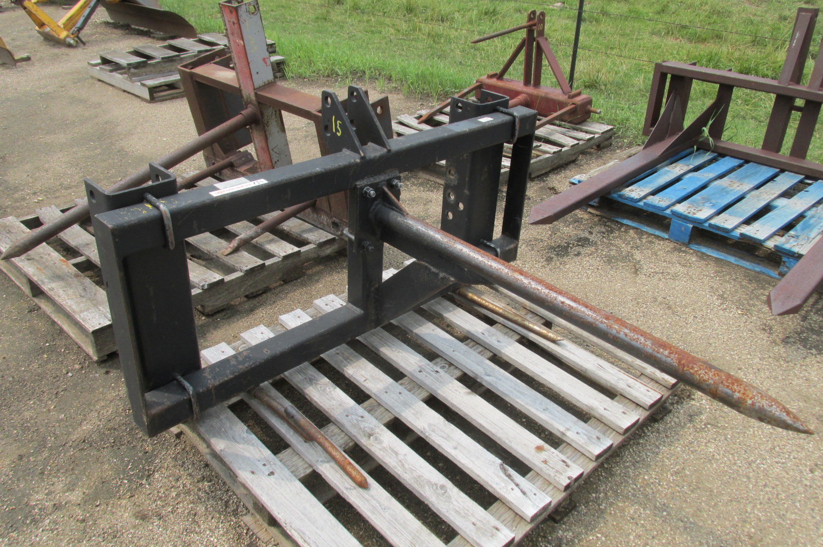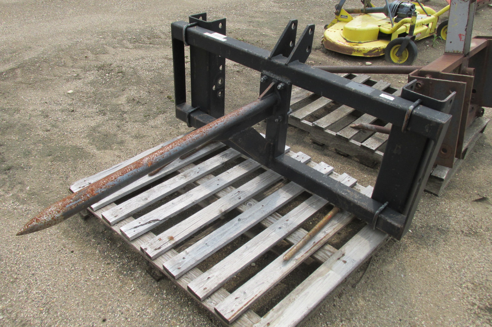 Worksaver bale spear for loader or 3 point use. Adjustable width brackets.