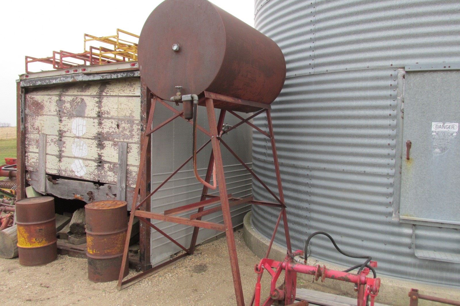 Gas barrel with stand. Approximately 300 gallons.