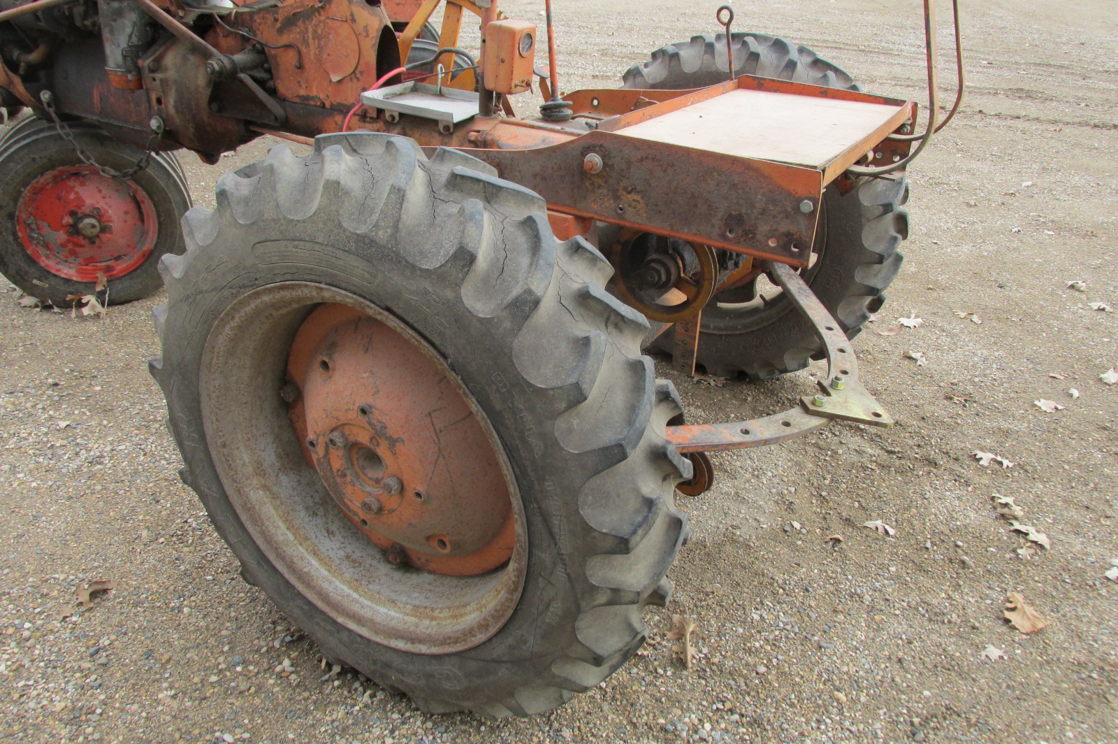 Pair of Goodyear 9.5x24 Dynatorqe II rear tracor tires on Allis chalmers C rims.