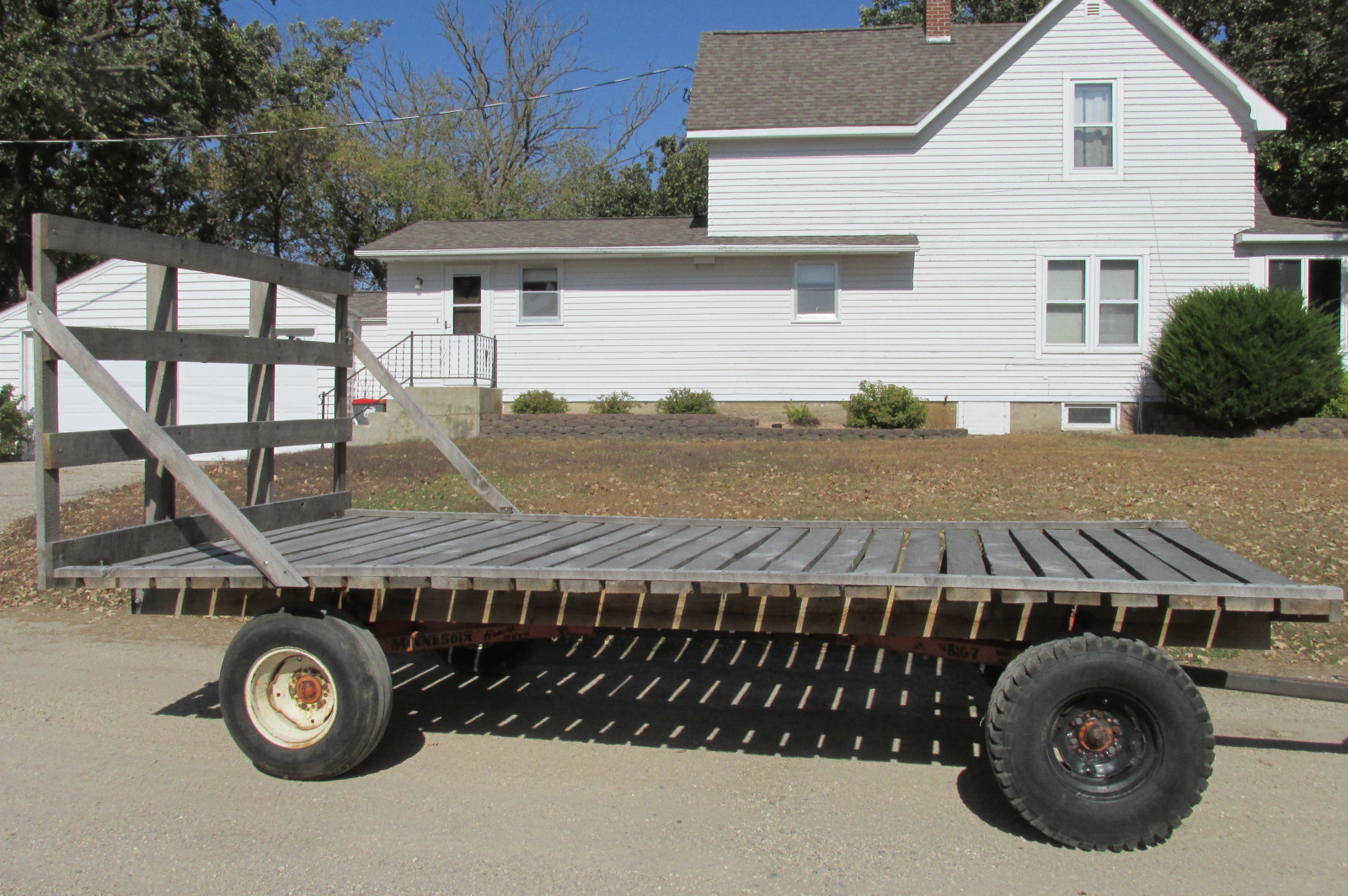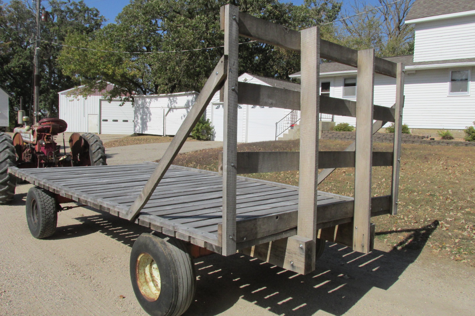 Unused 8ft x 16ft oak hayrack with Minnesota 7 ton Wagon.