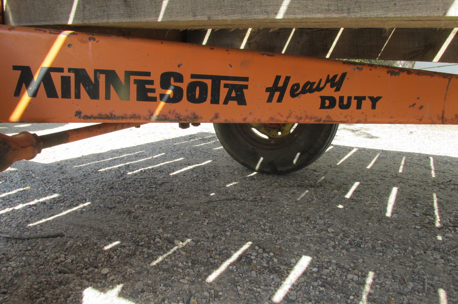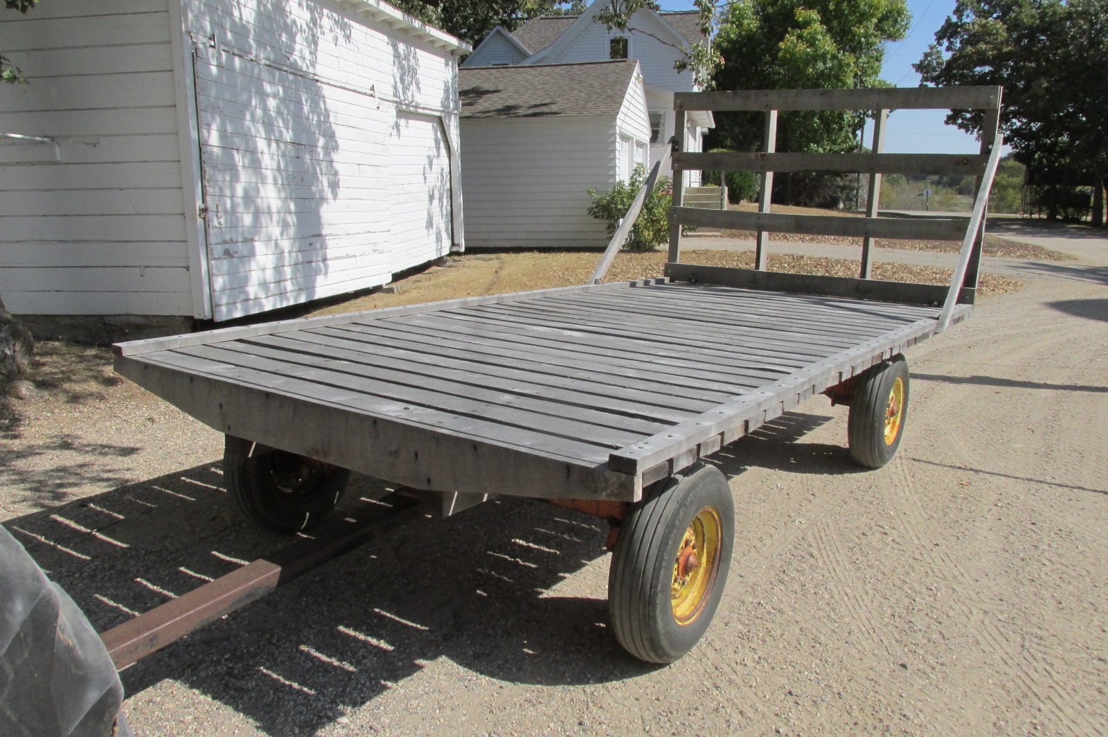 Unused 8ft x 16ft oak hay rack with Minnesota 8 ton wagon.