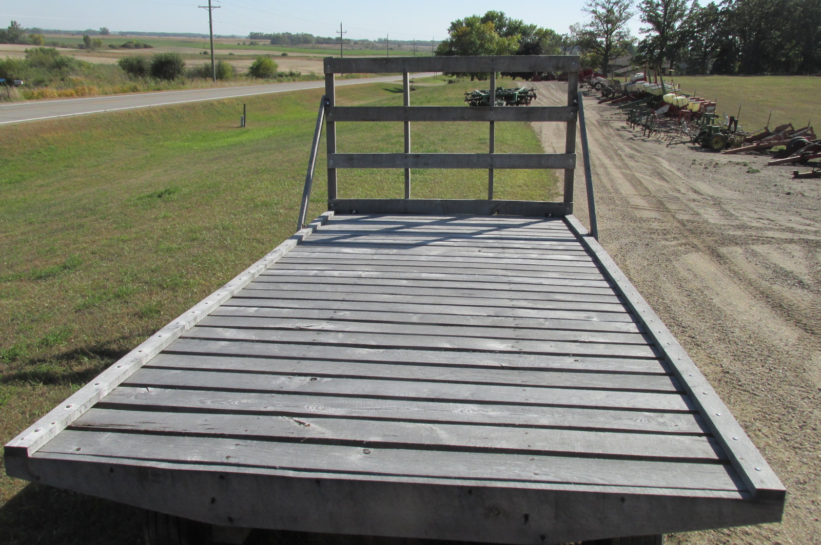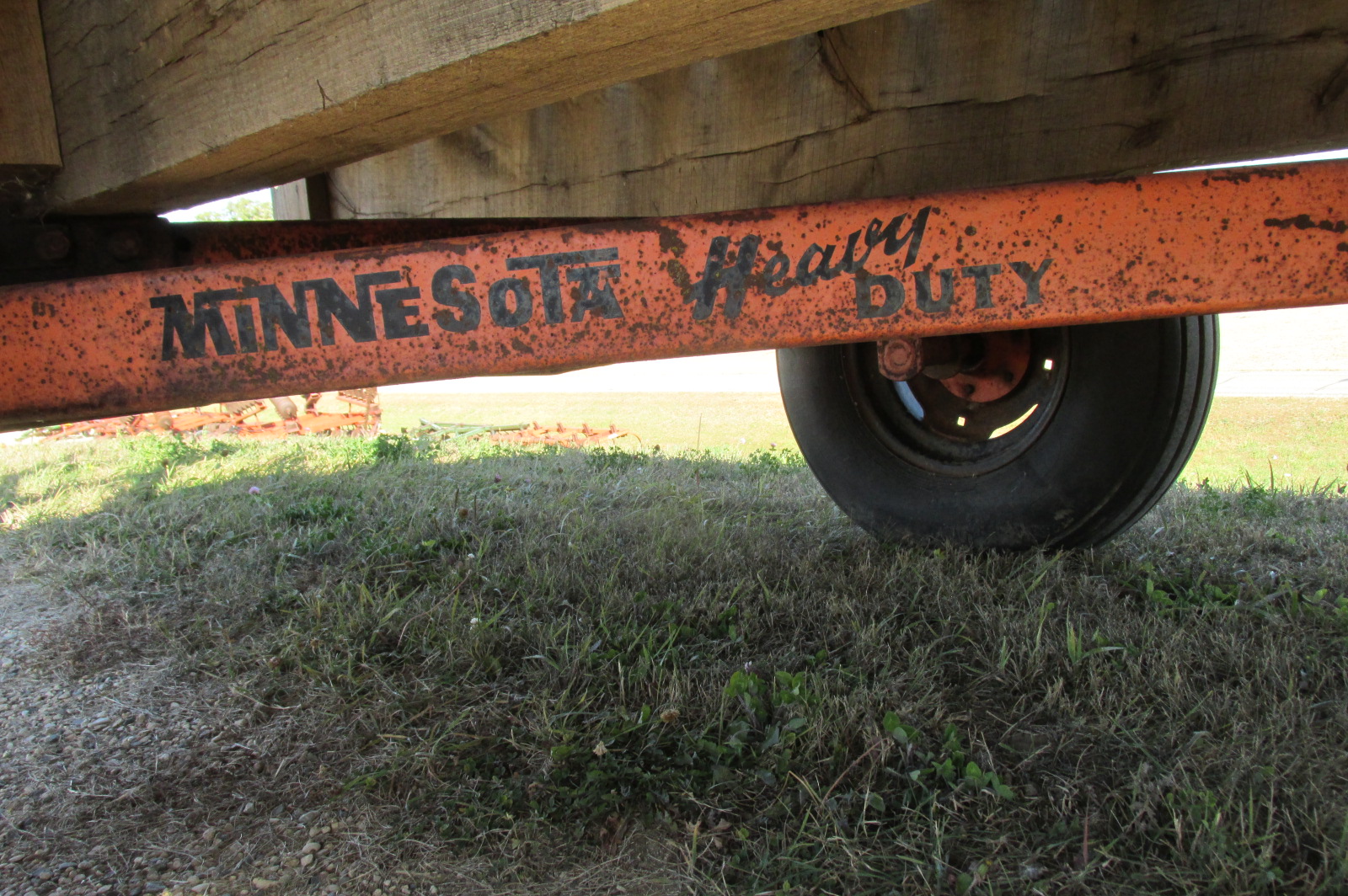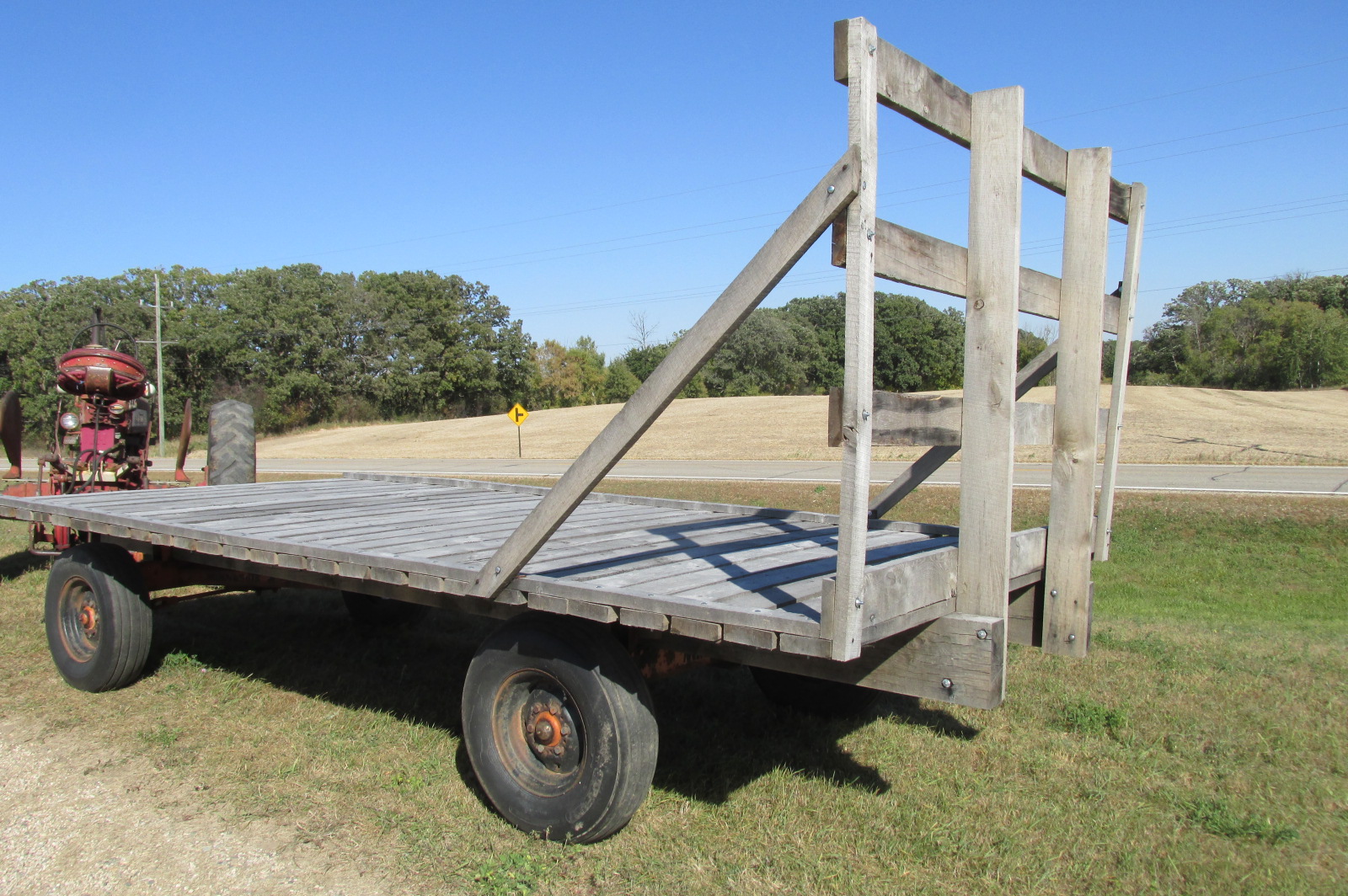 Unused 8ft x 16ft oak hay rack with Minnesota 7 ton wagon.