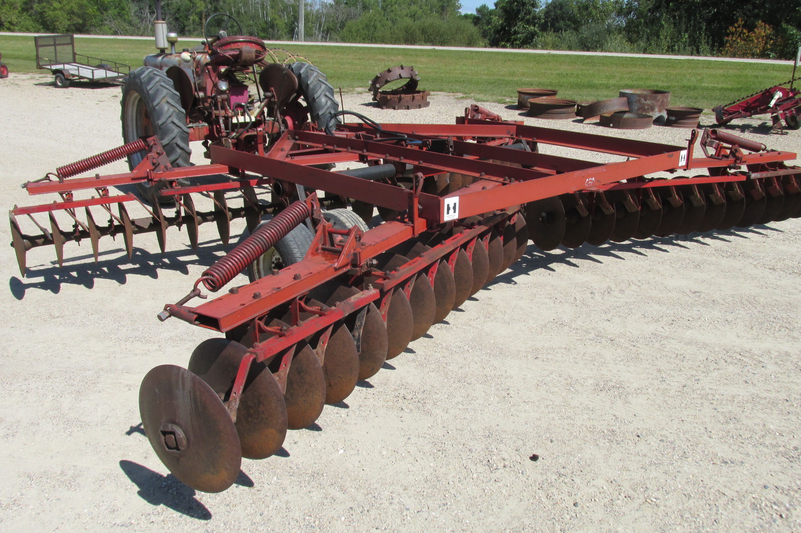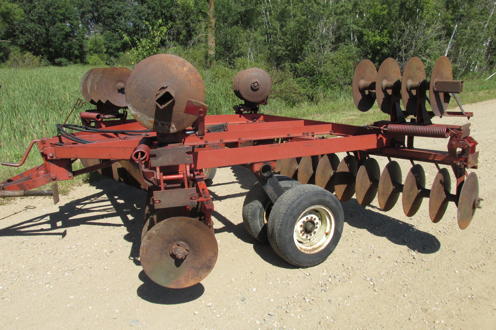International model 470 19ft disc with foldup wings and dual wheels. Includes hydraulic cylinder.