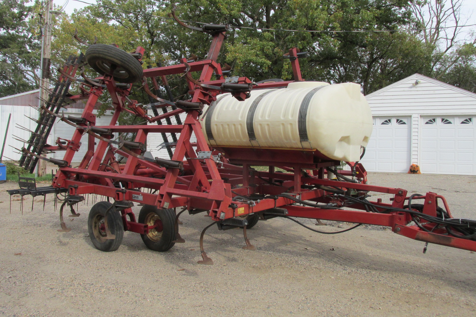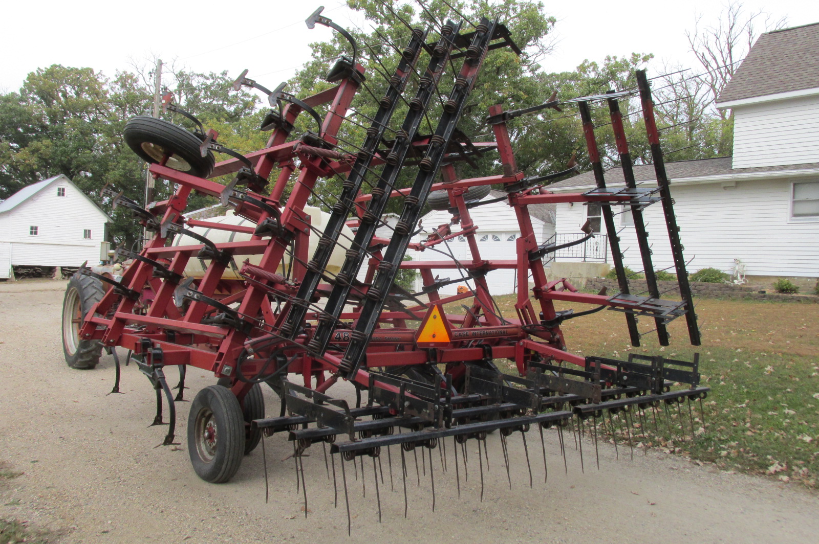 Case International model 4800 26.5 foot Vibrashank field cultivator with International 3 bar mounted mulcher harrow.