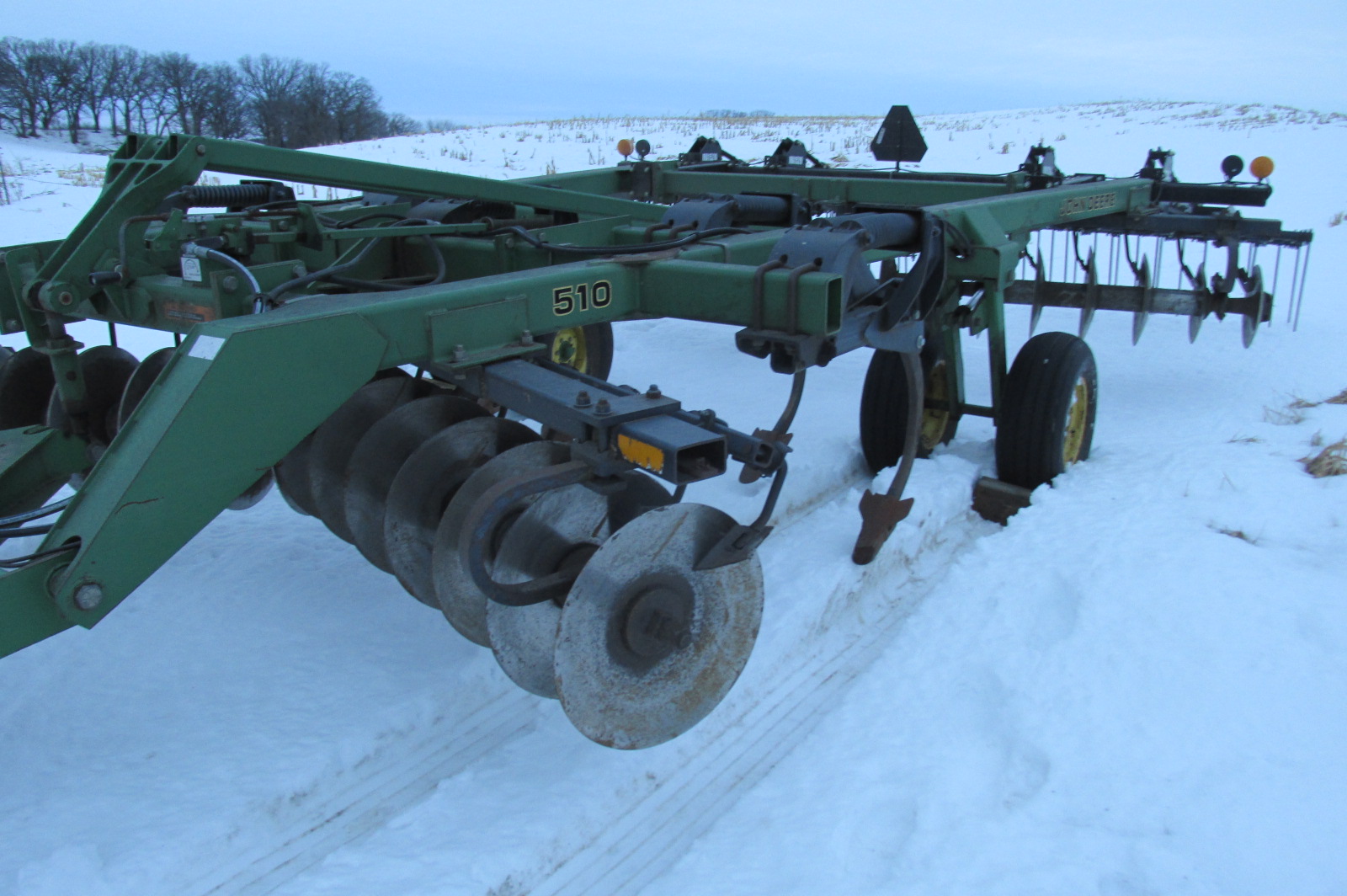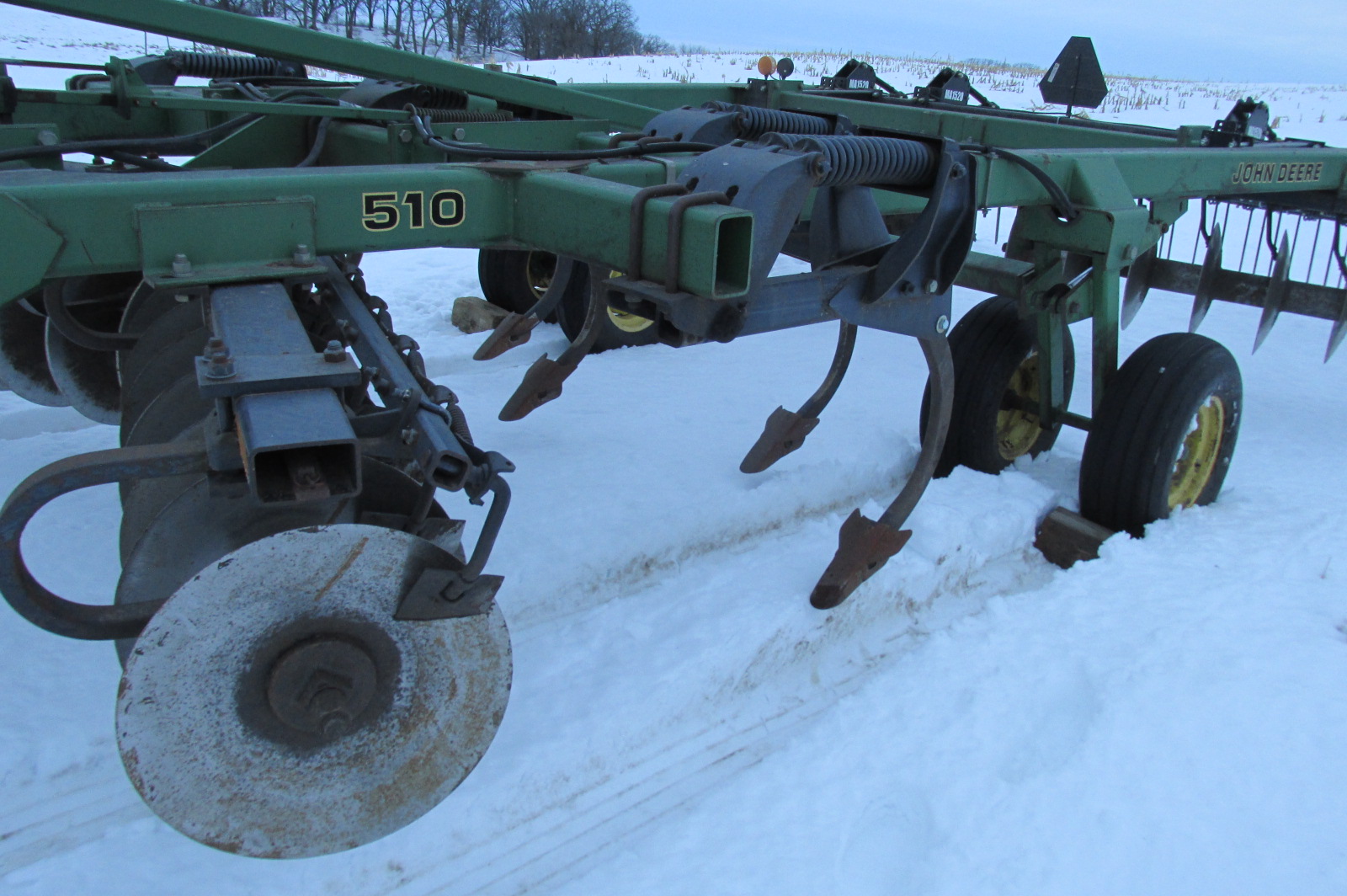 John Deere model 510 5 shank ripper with near, new heavy duty Summers mulcher.