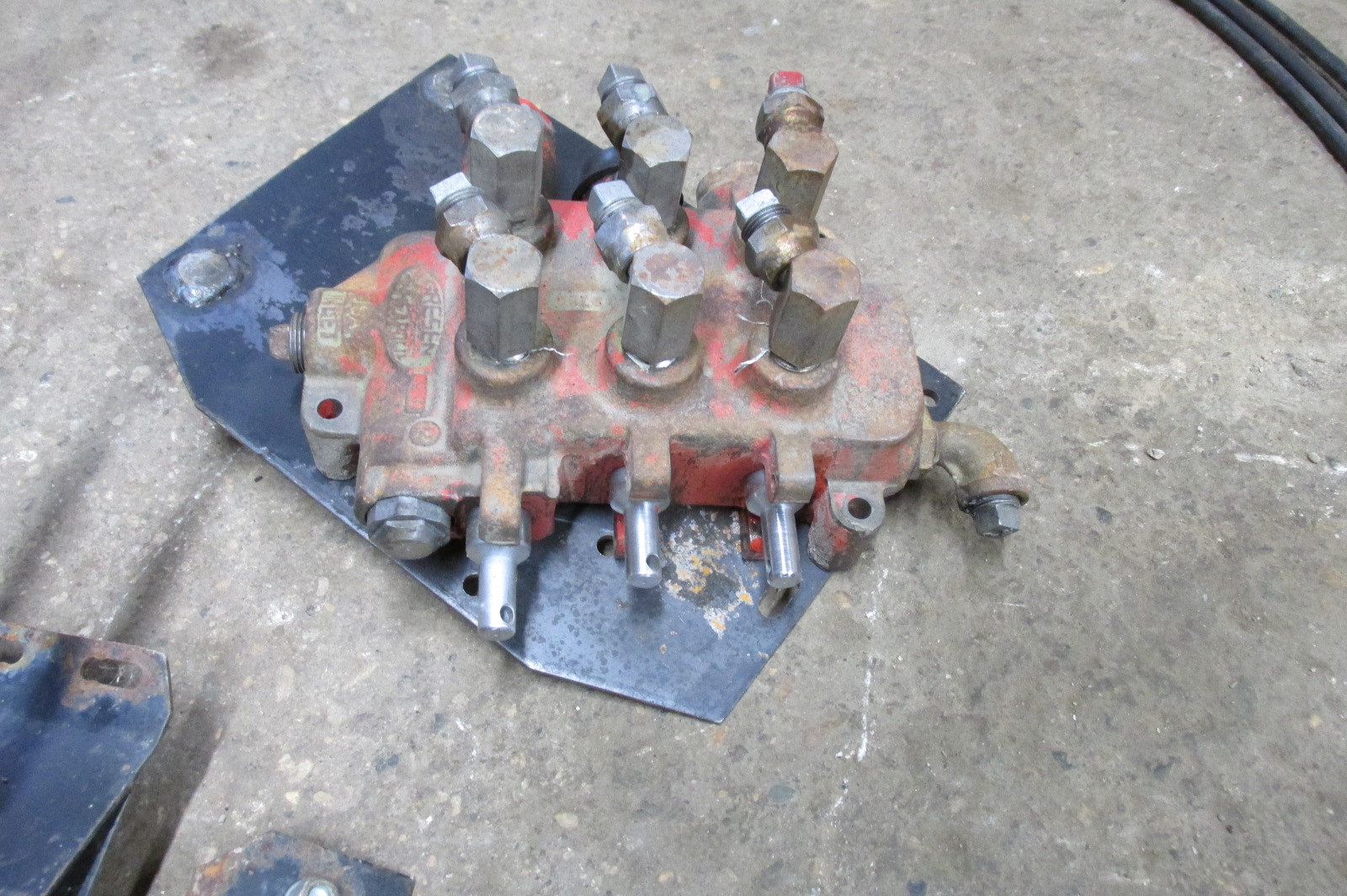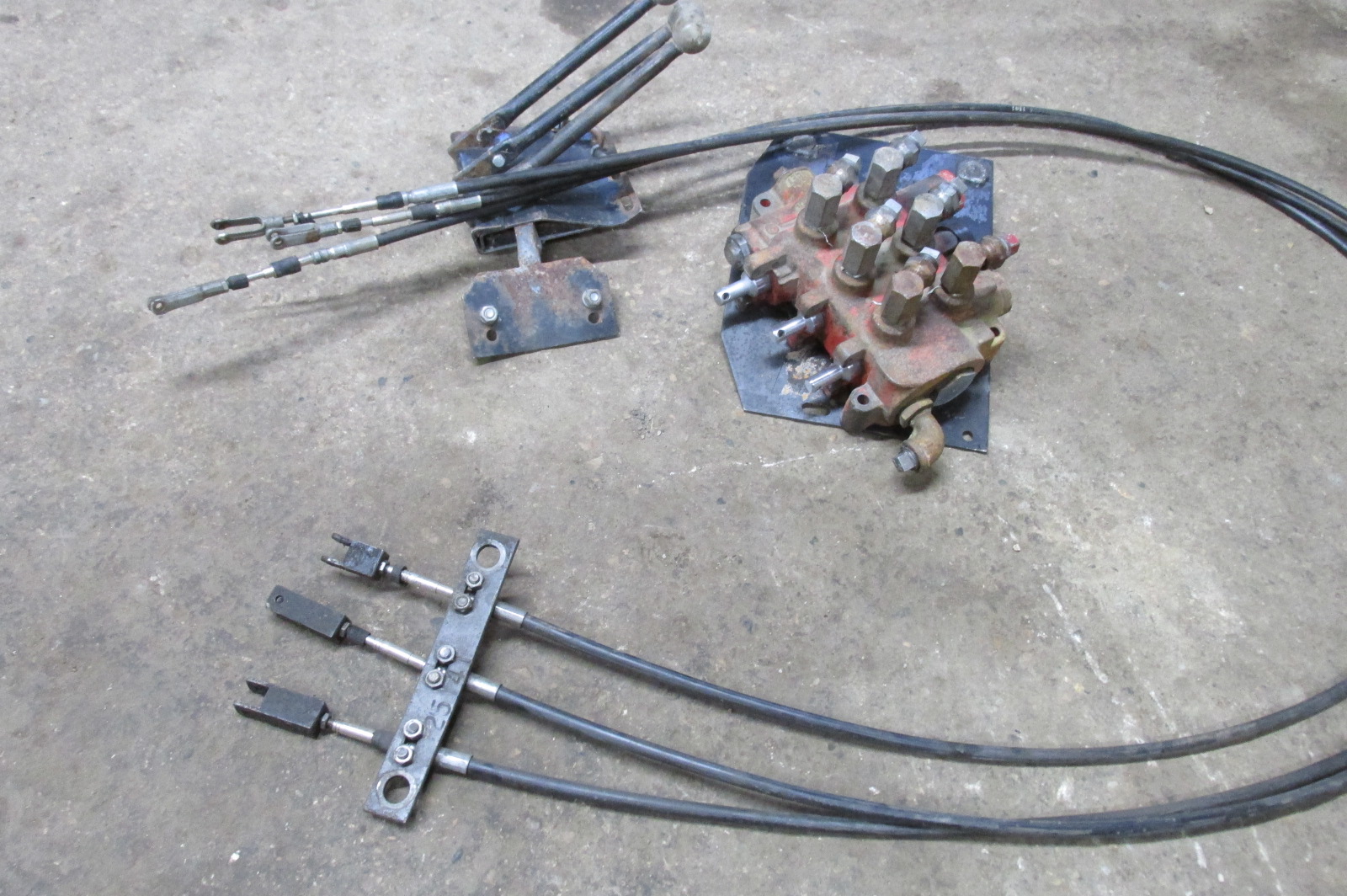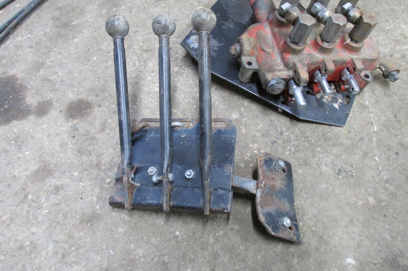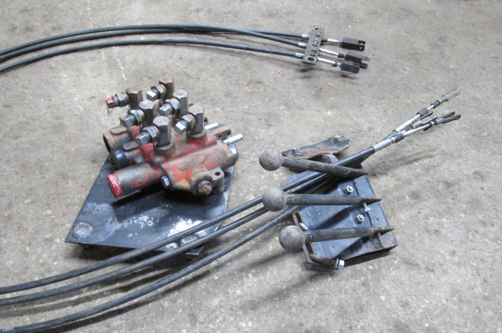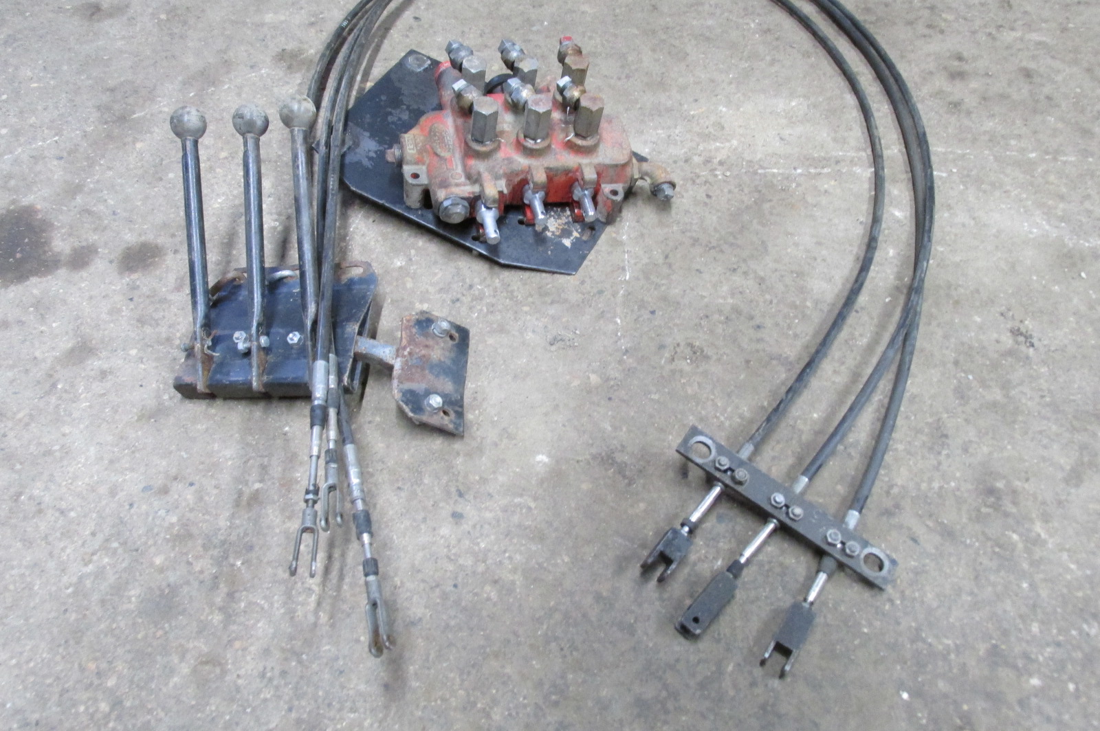 Gresen triple unit hydraulic valve with 9 foot remote cables and triple control levers.Allows you to locate hydraulic valve out of the tractor cab and have the levers only inside.Would work great for other applications as well.