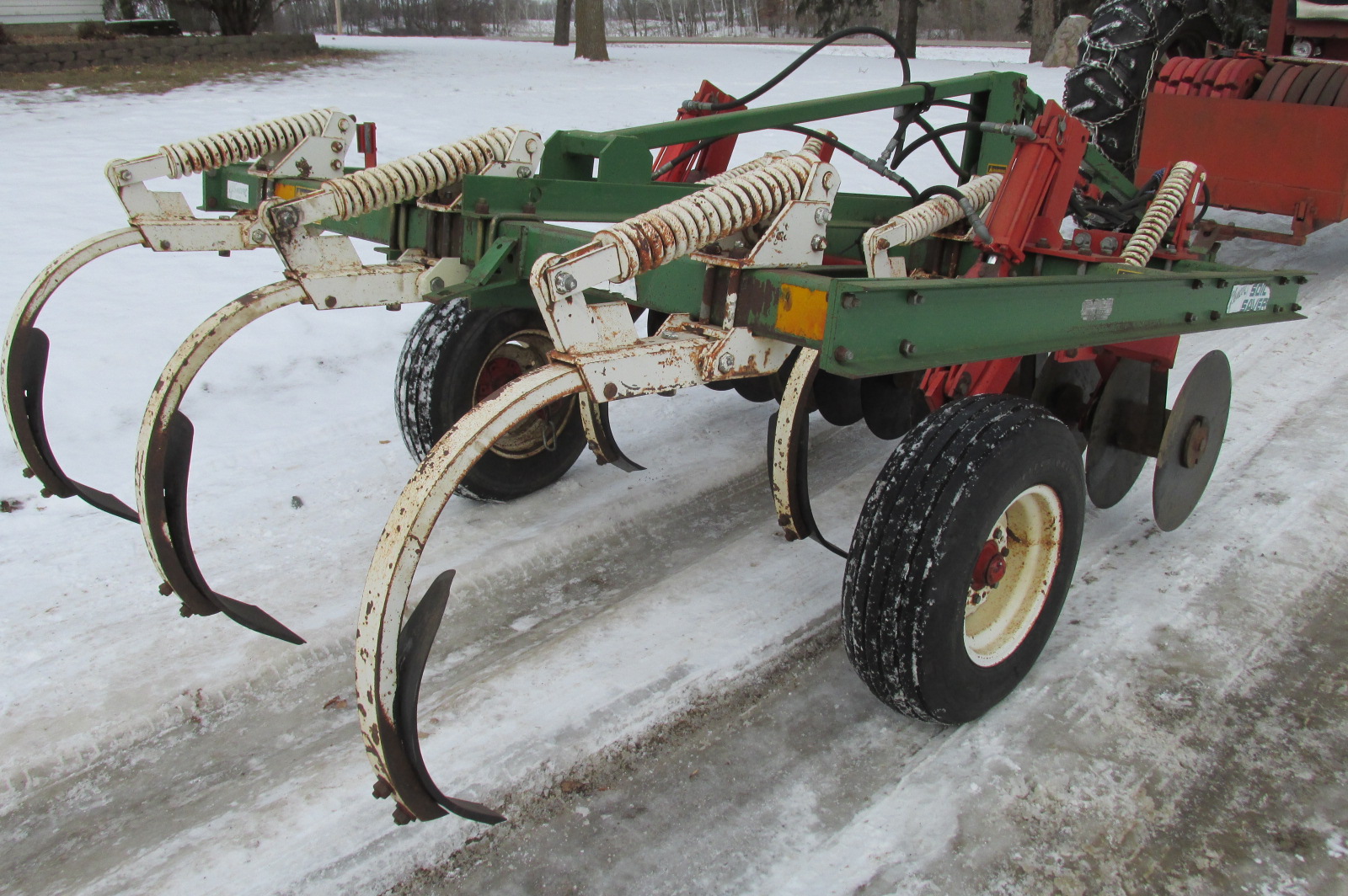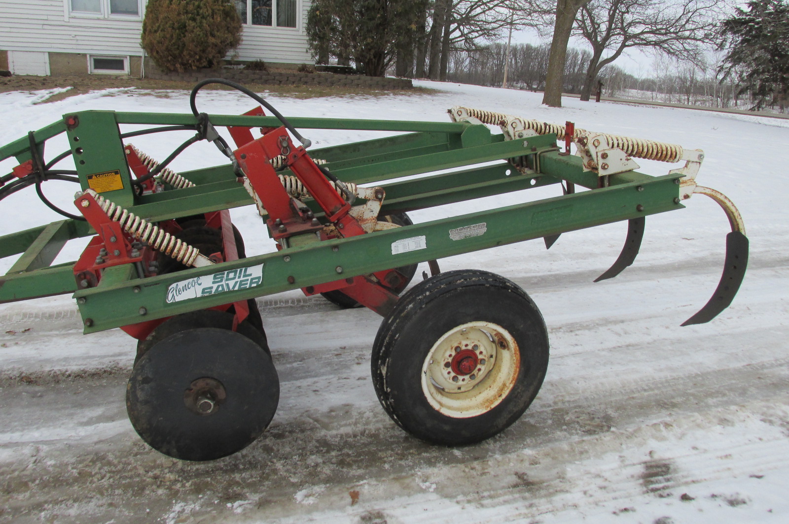 Glencoe 5 shank Soil Saver disc chisel.Very good condition.New disc blades.Good twist points.Greased up and ready for the field or your food plots.Nice hard to find small size for approximately 75 horsepower tractor.