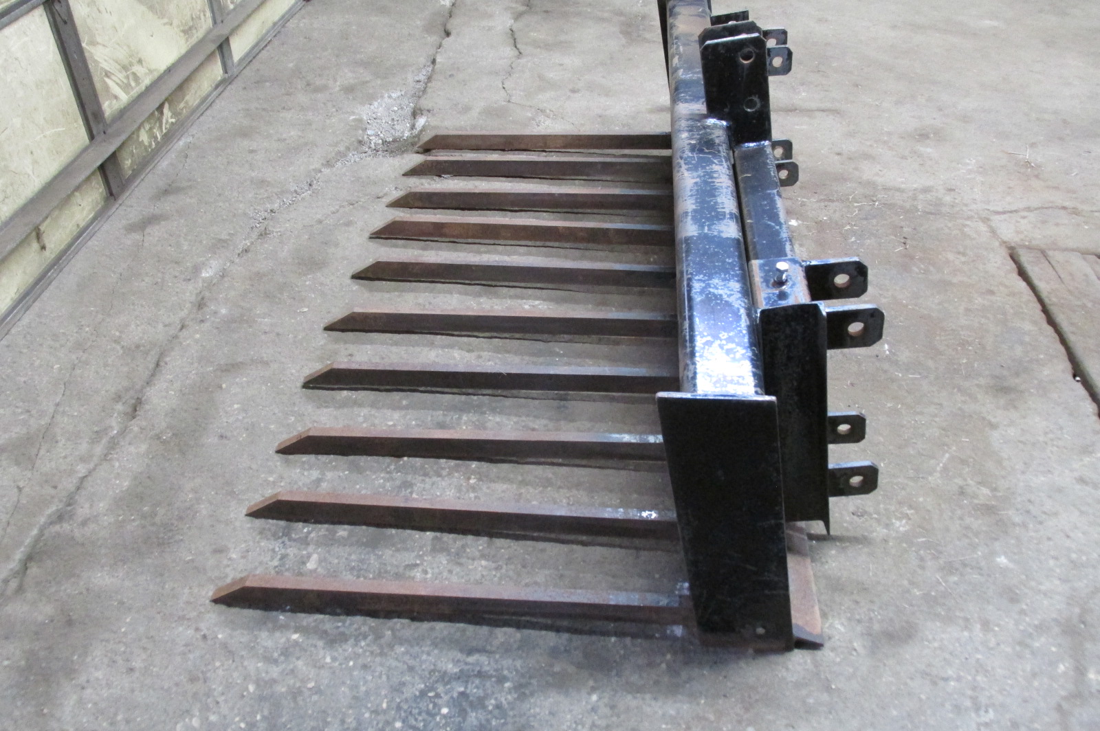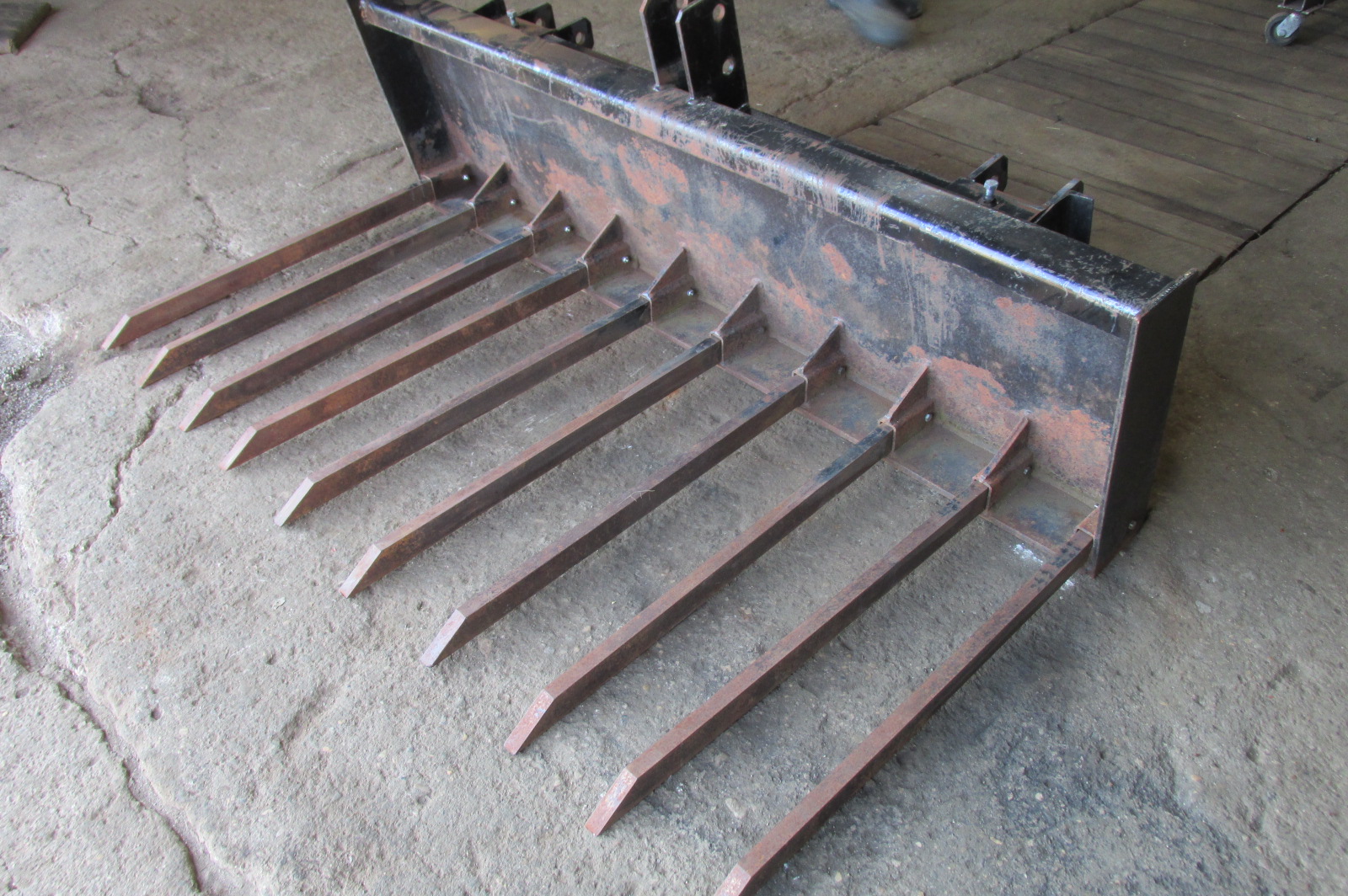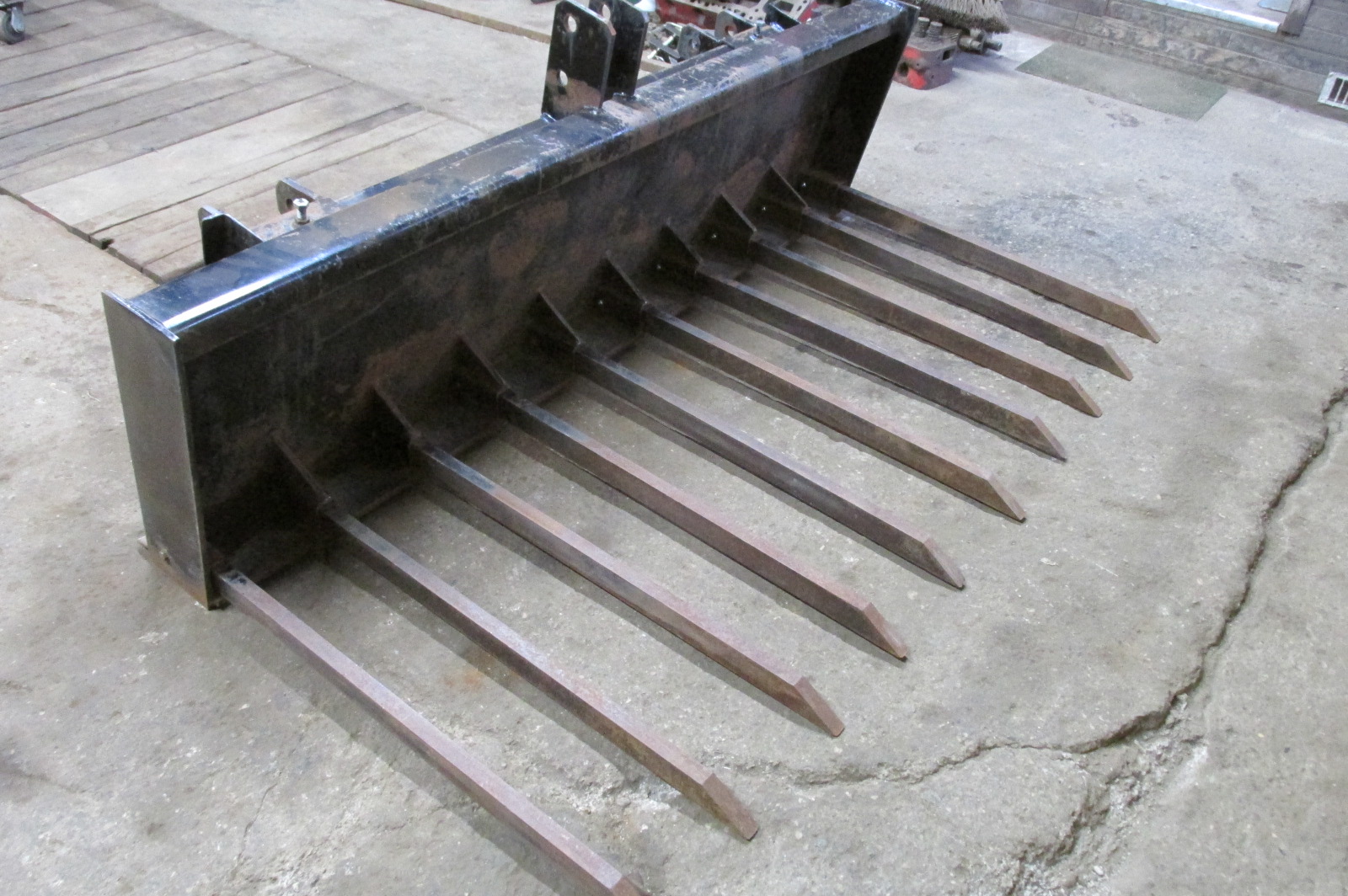 Newer heavy duty 6 foot Manure/Hay/Tine bucket for a hydraulic tilt loader. Universal mount - adjustable to fit most loaders.
