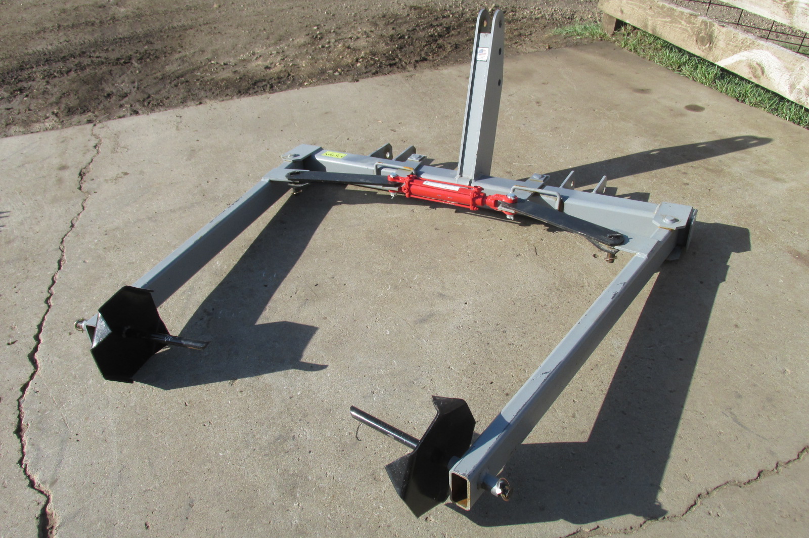New 3 point big round bale unroller with hydraulic cylinder.