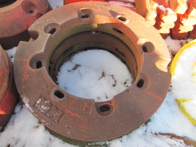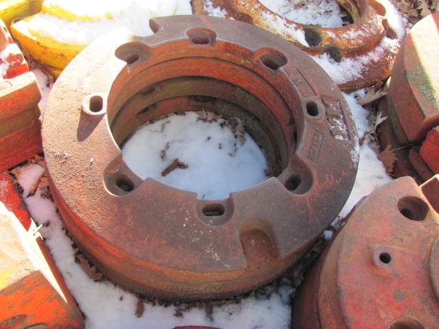 Rear wheel weights for Moline tractors.