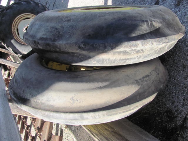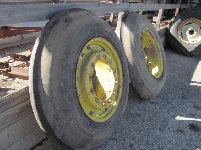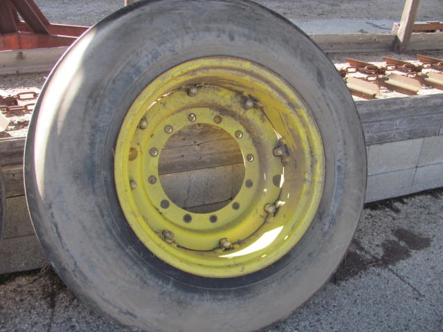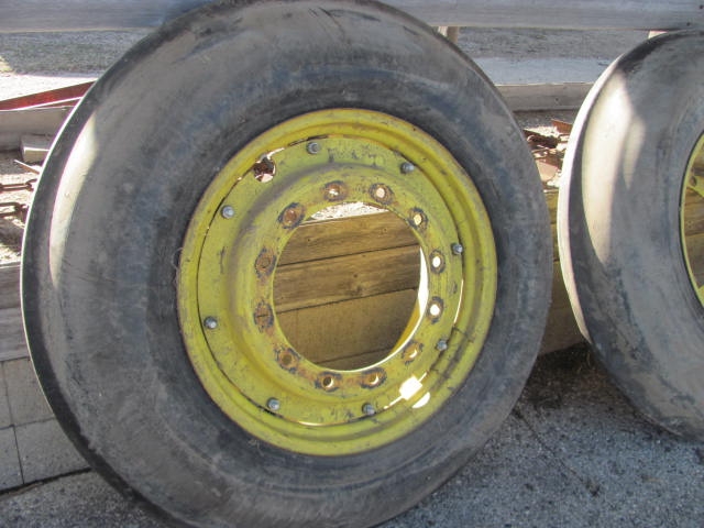 Pair of 11.25 x 28 single rib tires with wheels. Were on a John Deere 8100 tractor.