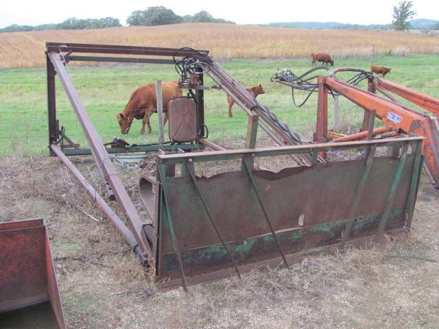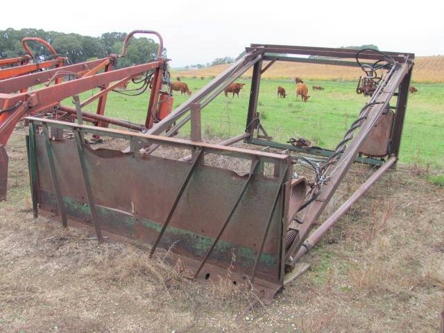 Farmhand F10 stacker loader with tine bucket, hydraulic pump and controls.