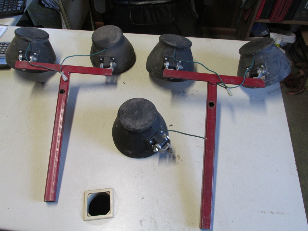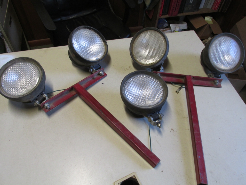 Five 6" 12 volt sealed beam lights with mounting frames.