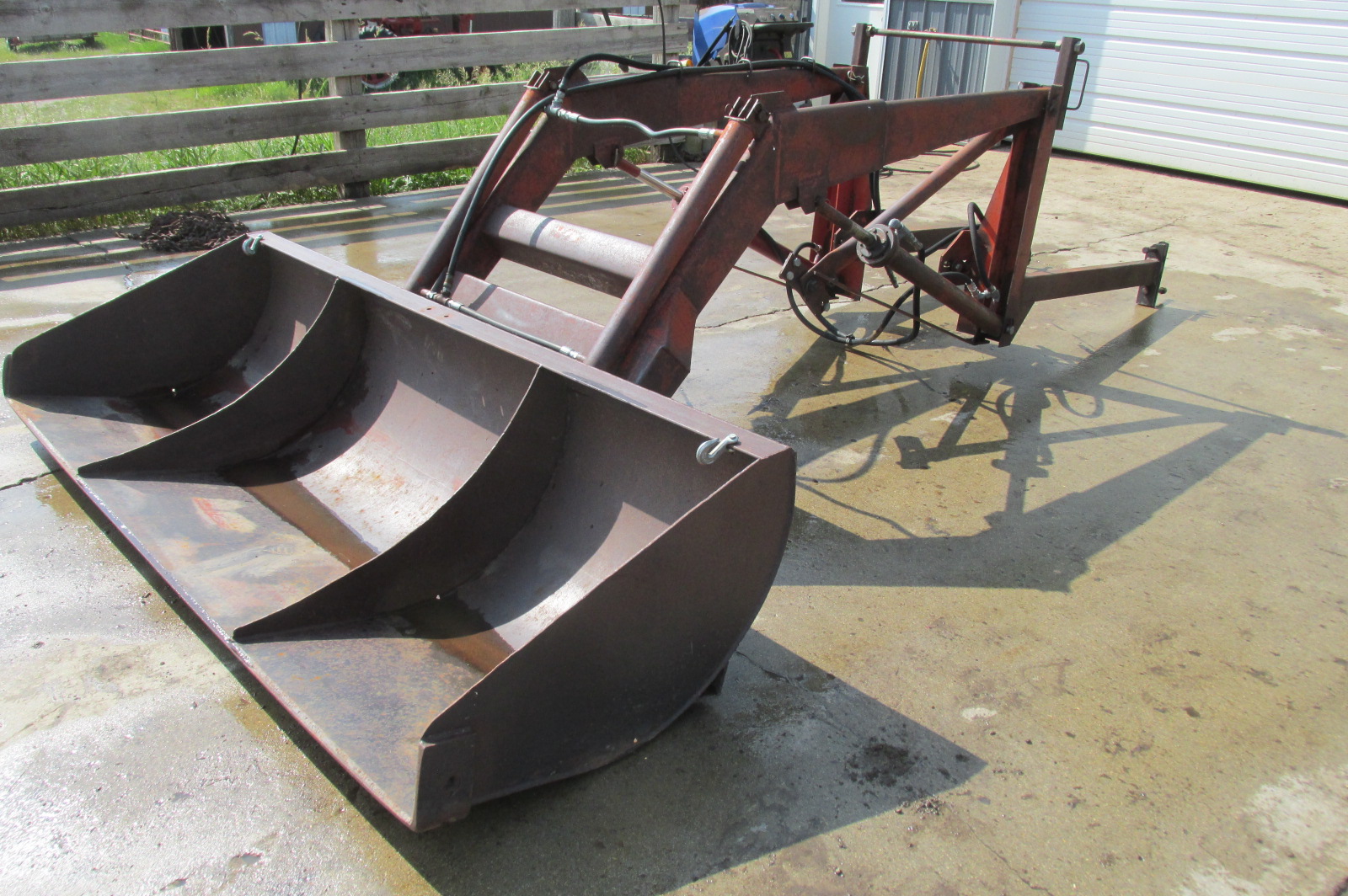 Paulson hydraulic tilt bucket loader, Double acting cylinders on bucket and lift. 8 foot wide snow/material bucket. Came off an International Farmall 300 tractor but will fit many other models.