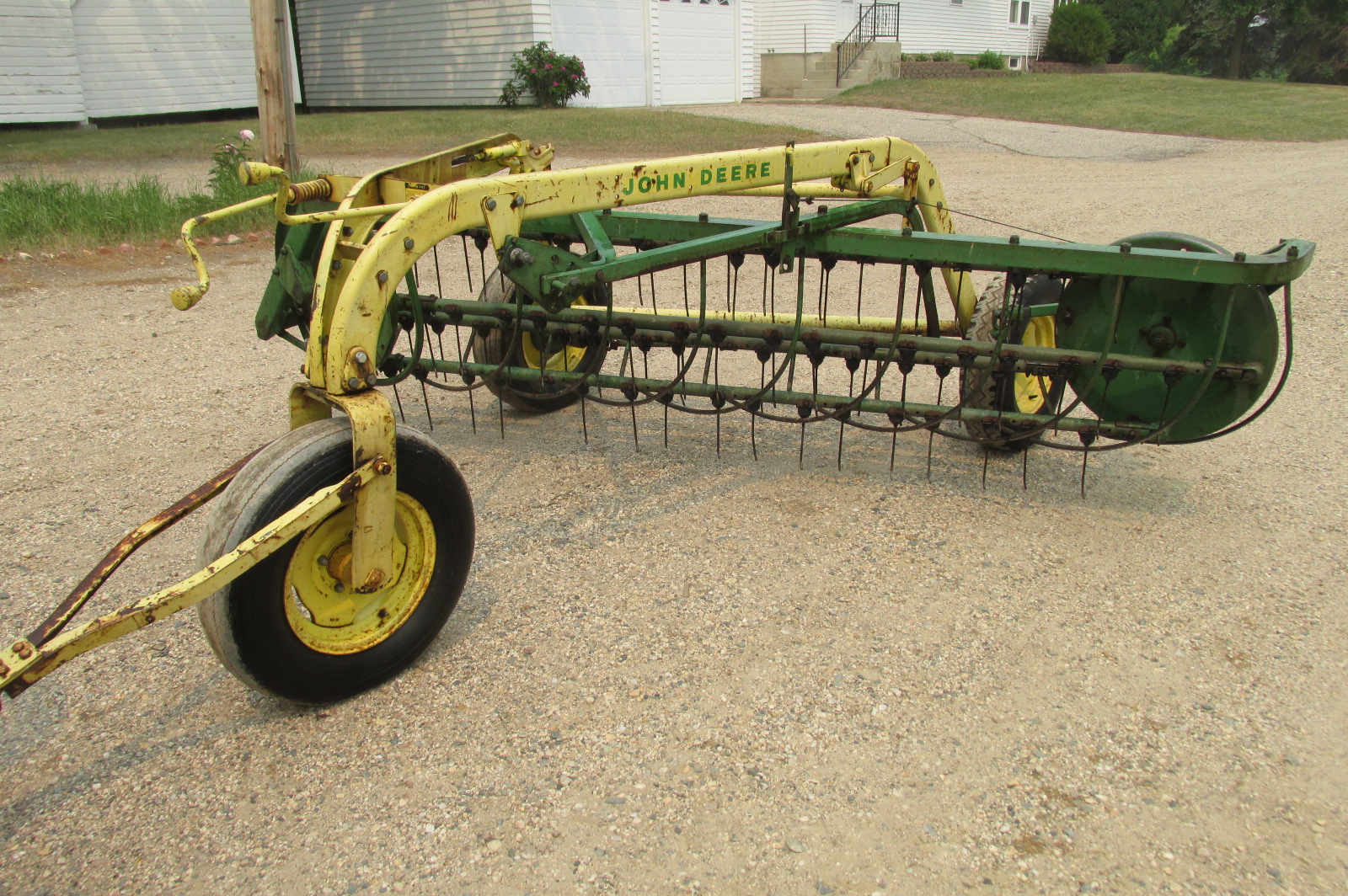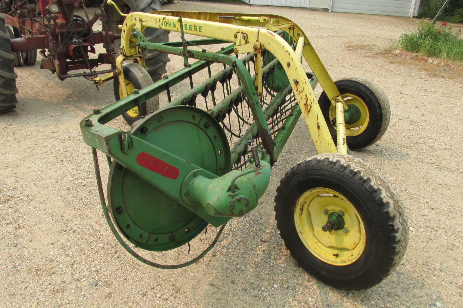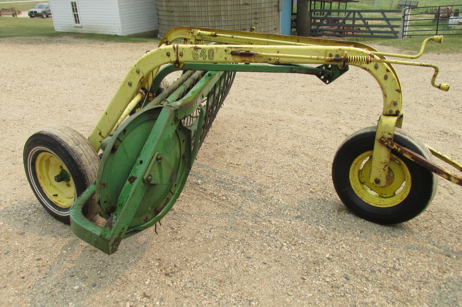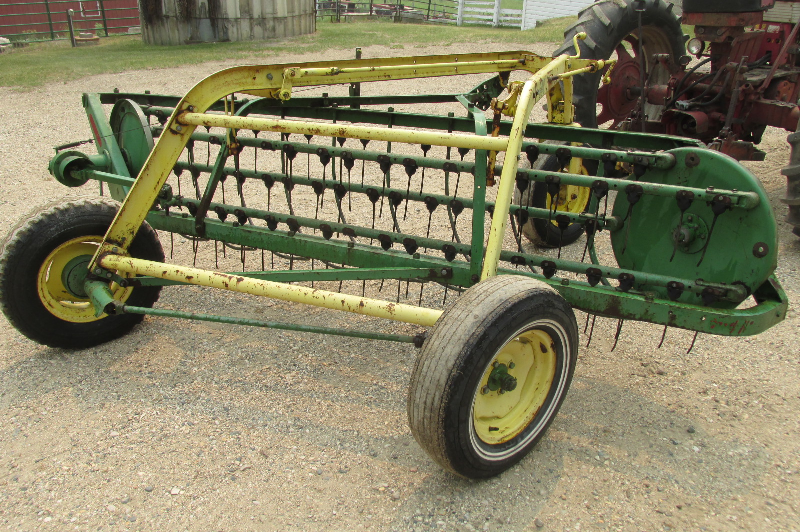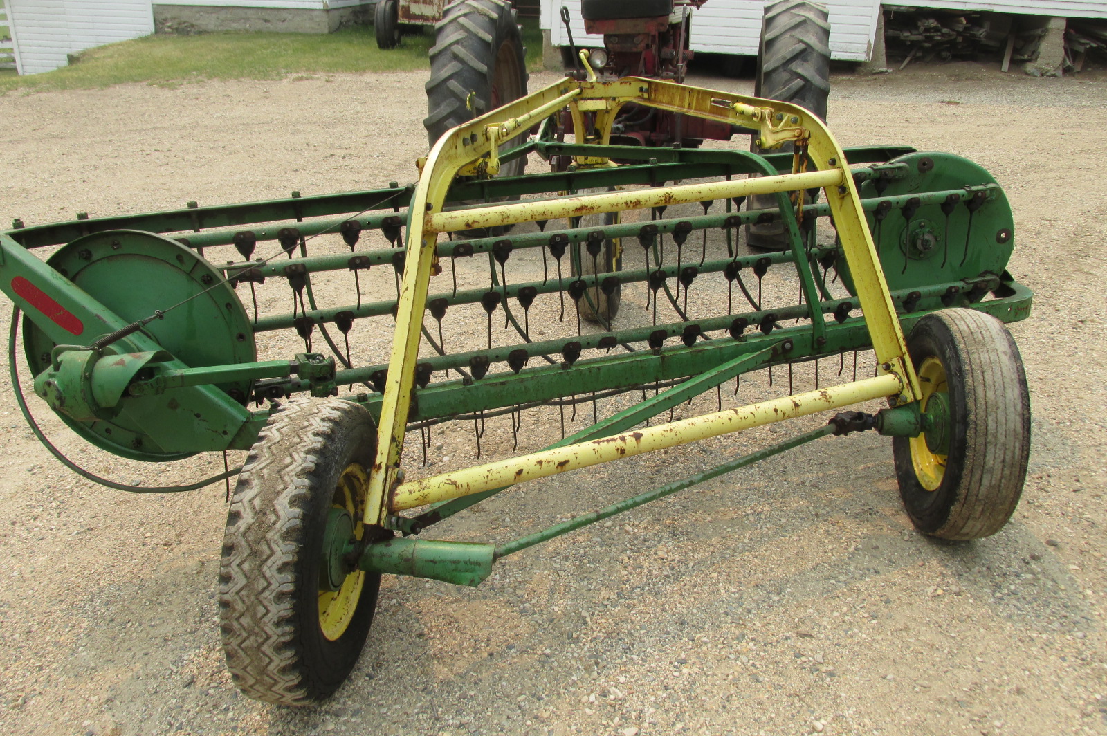 John Deere model 640 5 bar hay rake with front dolly wheel.