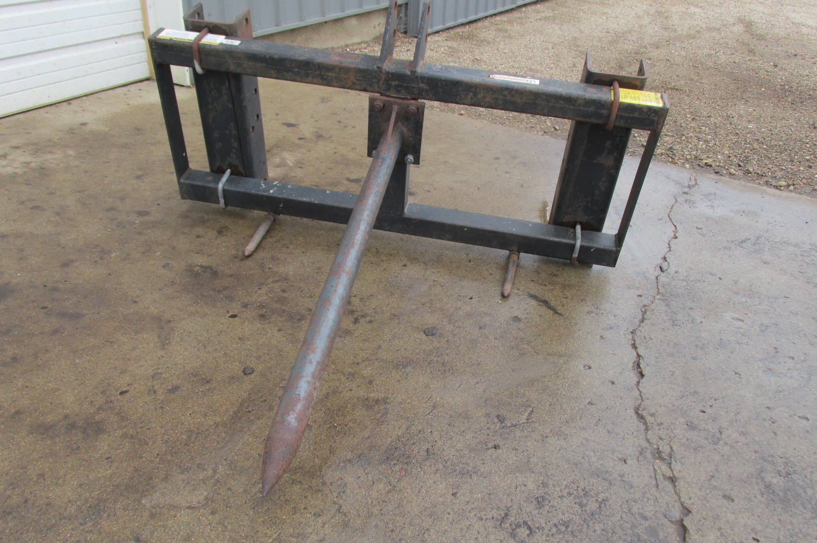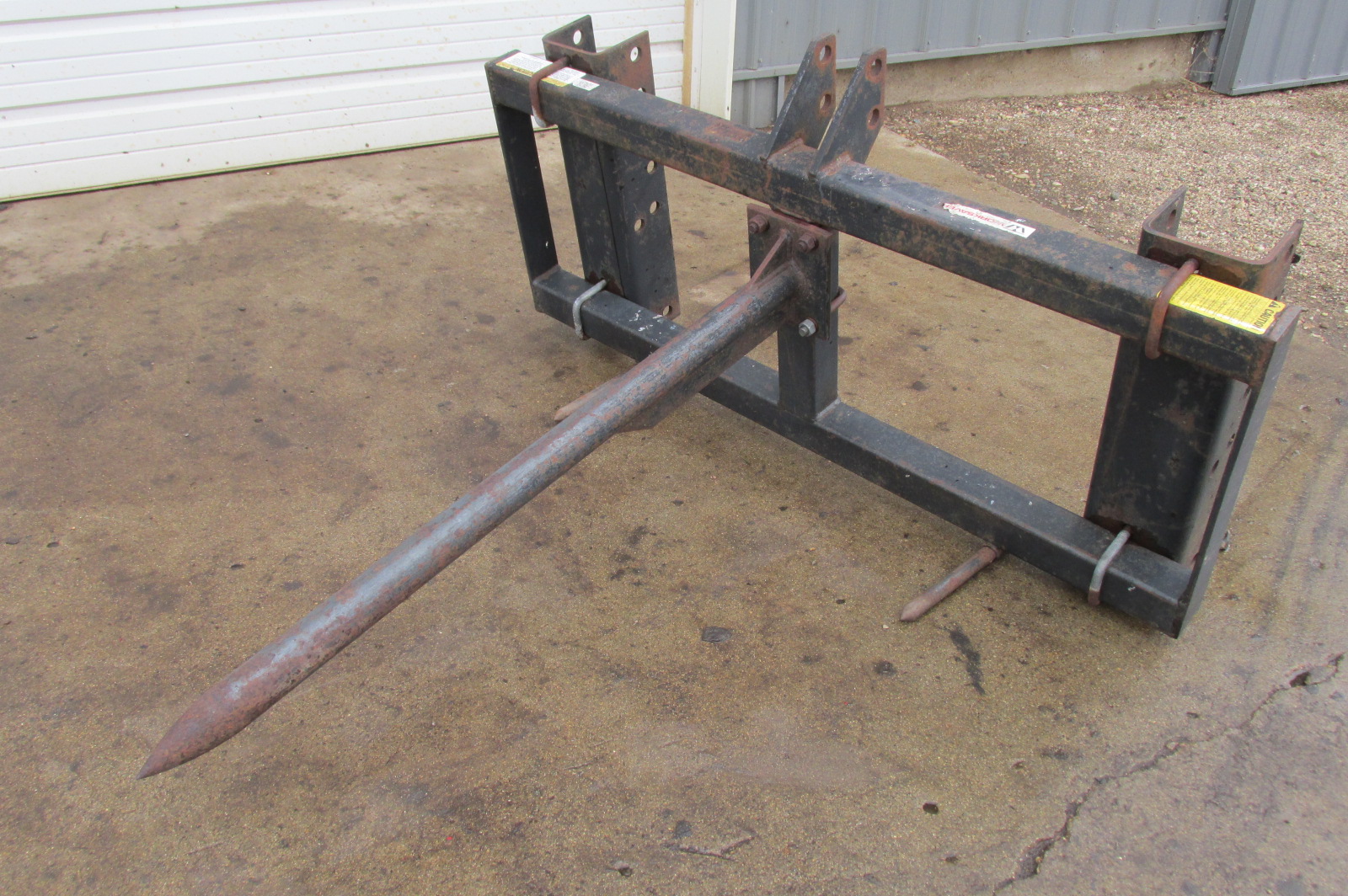 Worksaver bale spear for a loader or 3 point hitch.