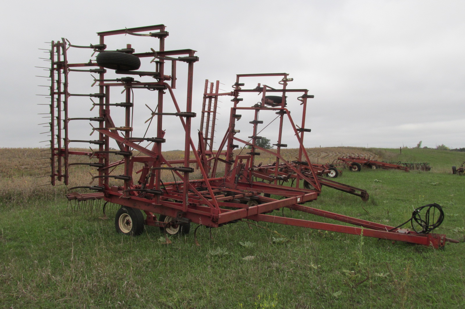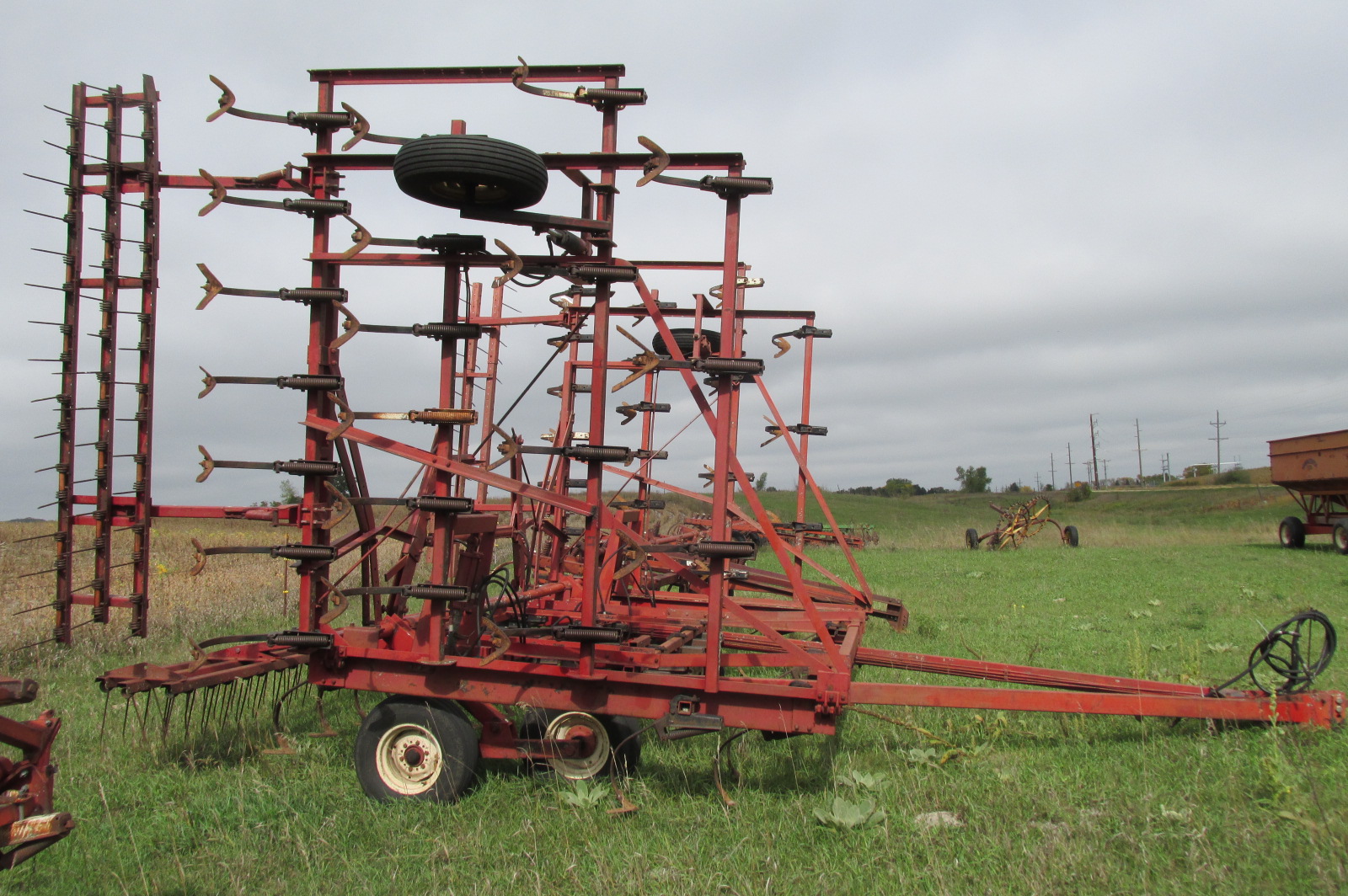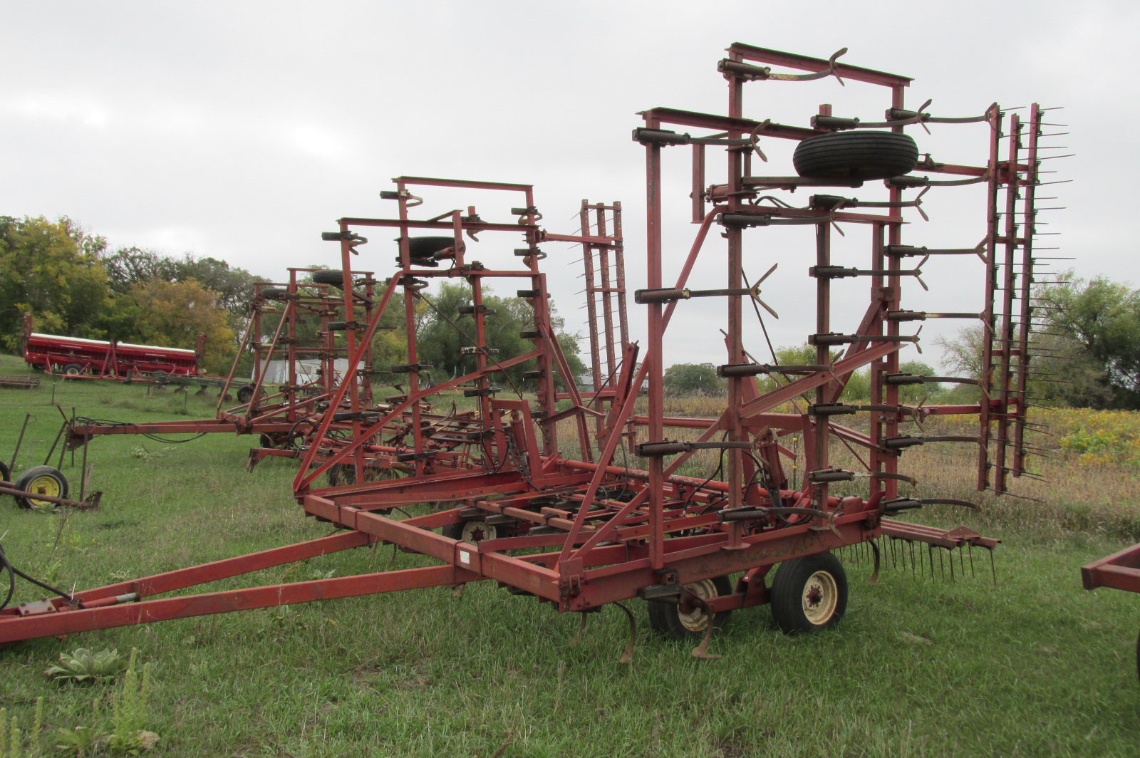 International model 4500 35 foot field cultivator with 3 bar International mulcher harrow.
