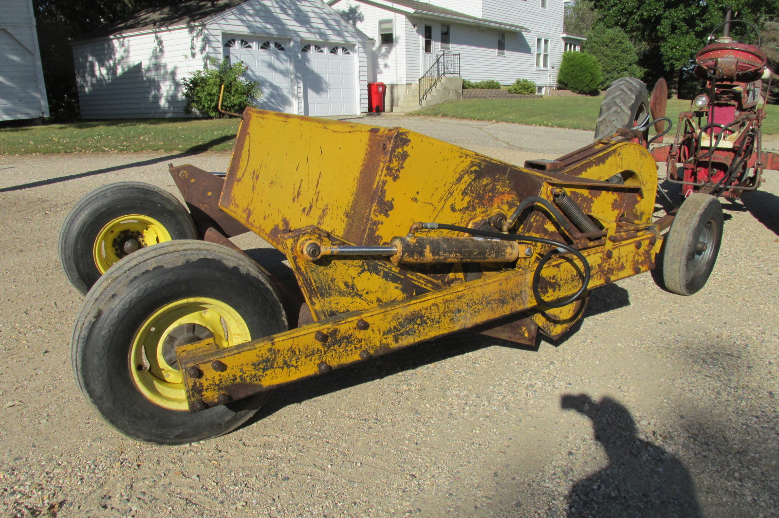 Eversman model 25D Scraper with front dolly wheels. Approximately 2.5 yards capacity.
