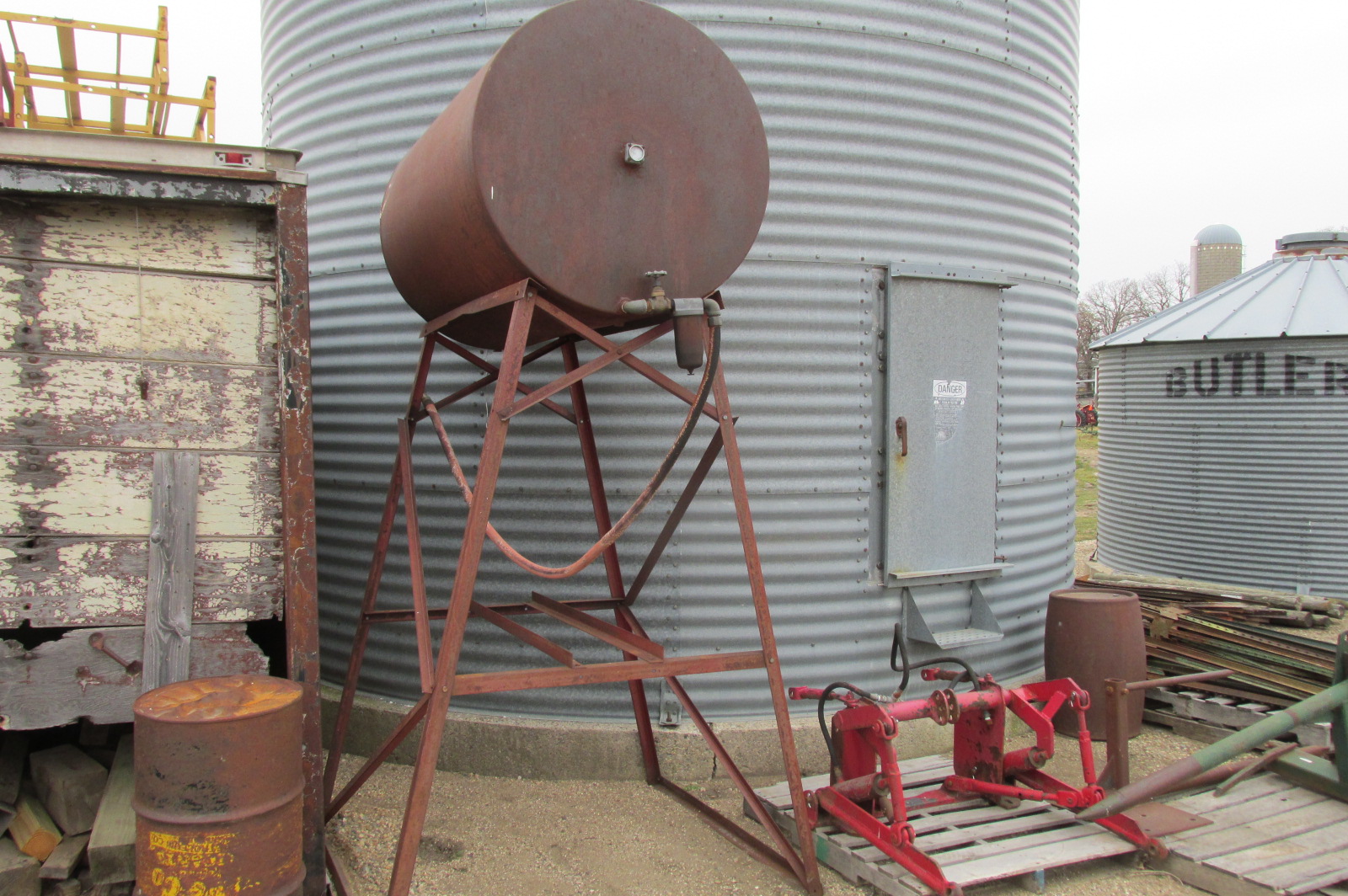 Gas barrel with stand. Approximately 300 gallons.