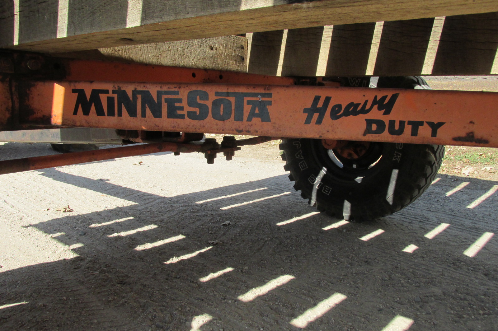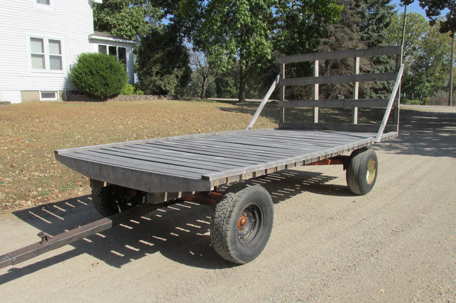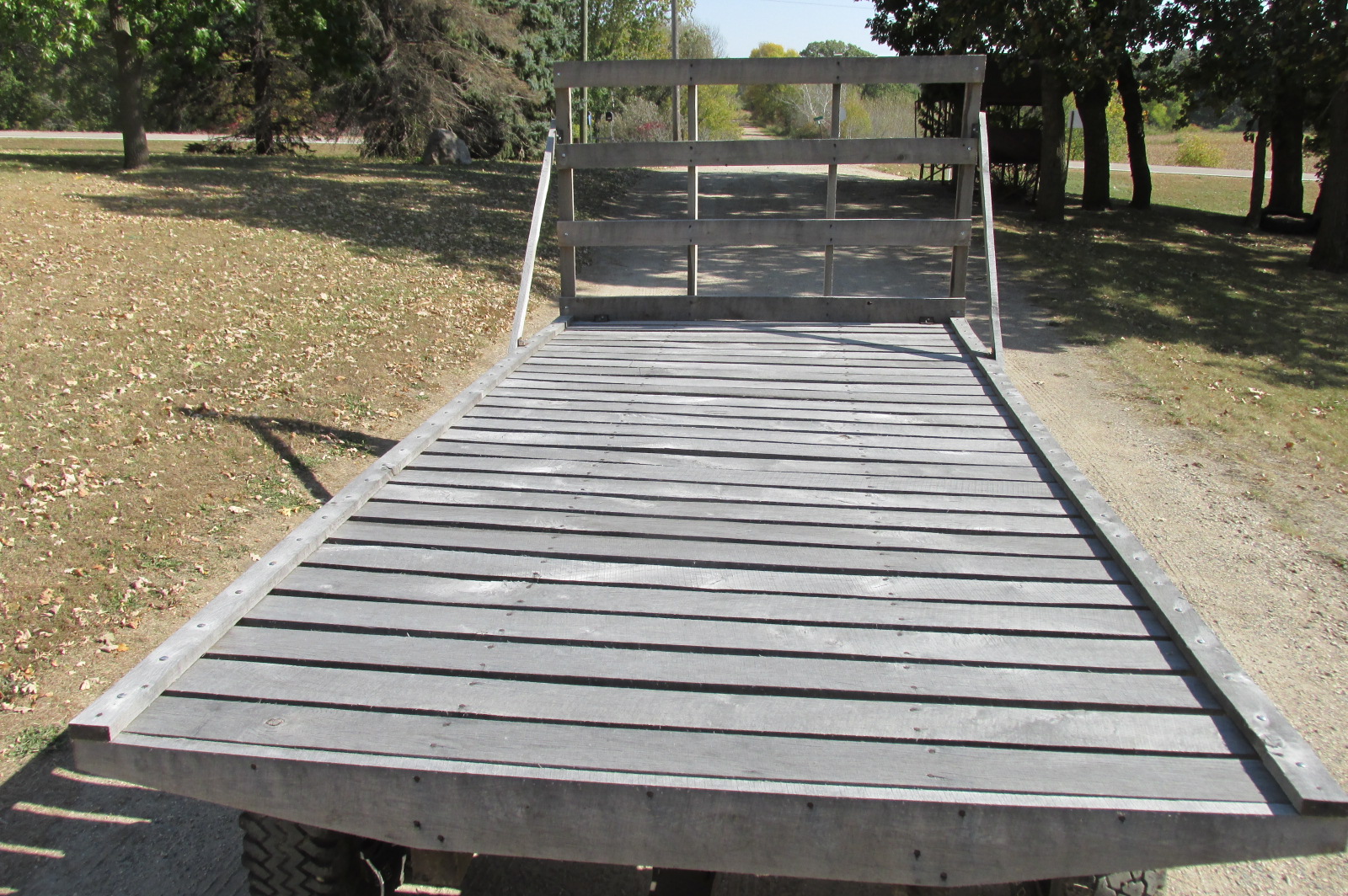 Unused 8ft x 16ft oak hayrack with Minnesota 7 ton Wagon.