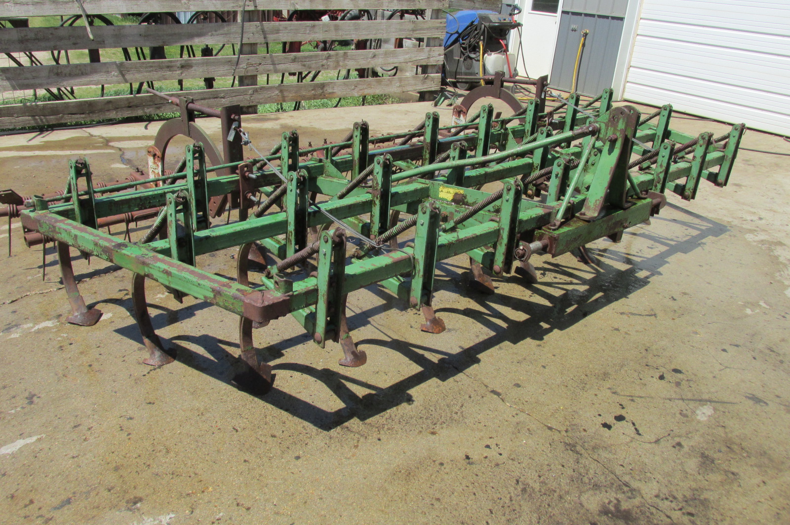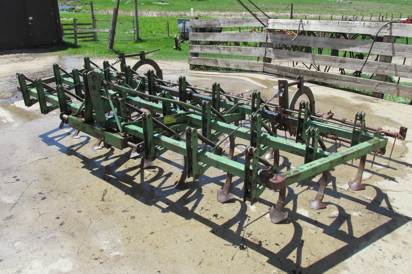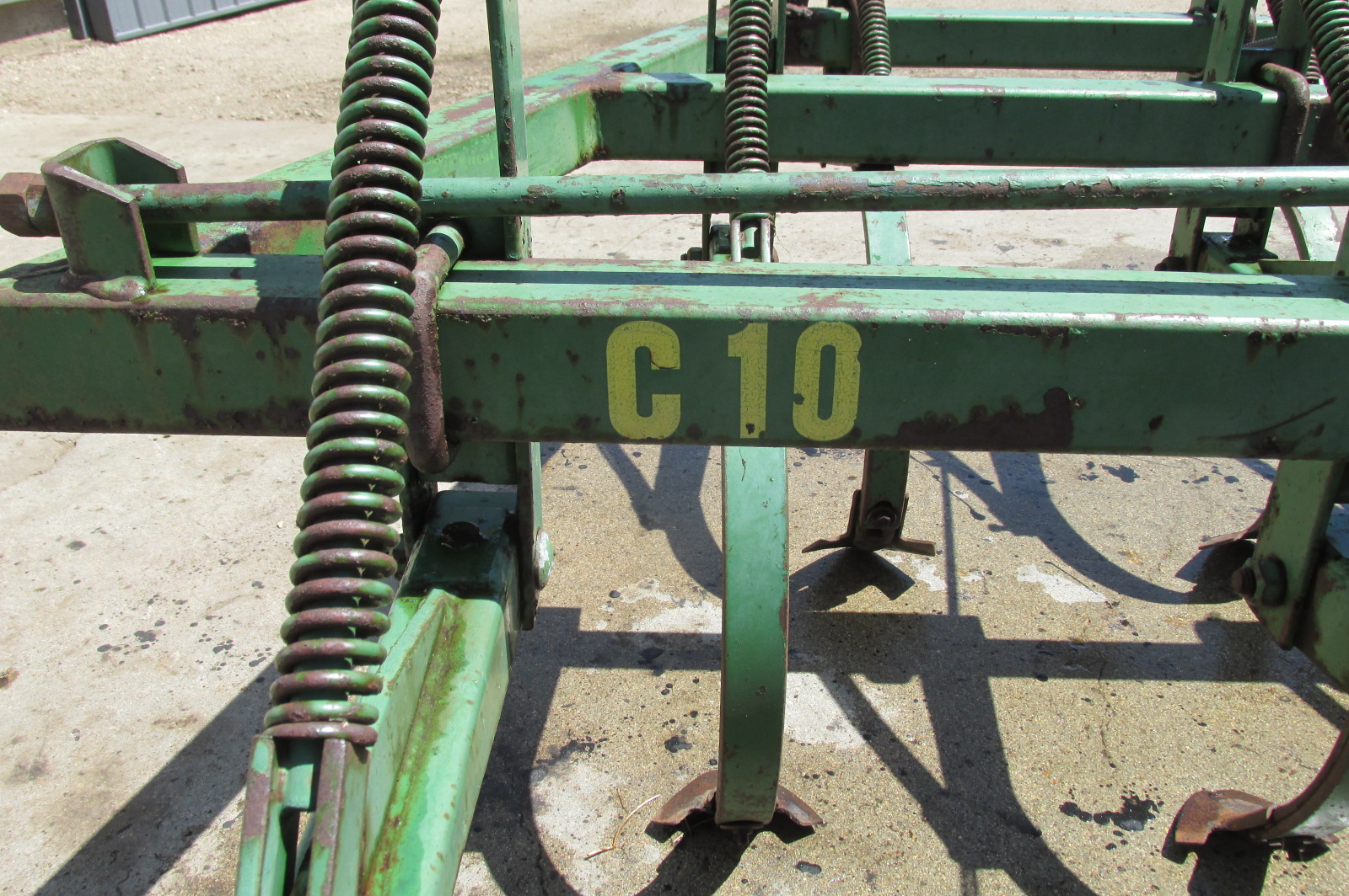John Deere model C10 12.5 foot 3 point field cultivator with mounted mulcher harrow.