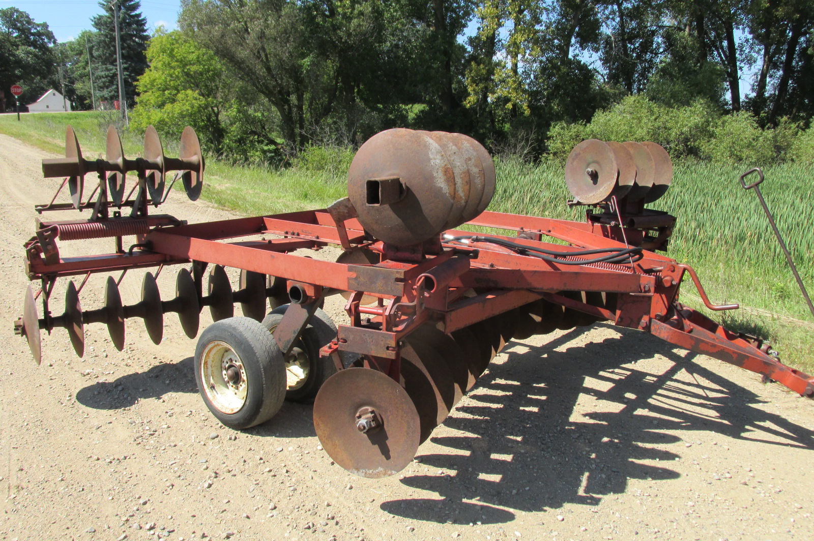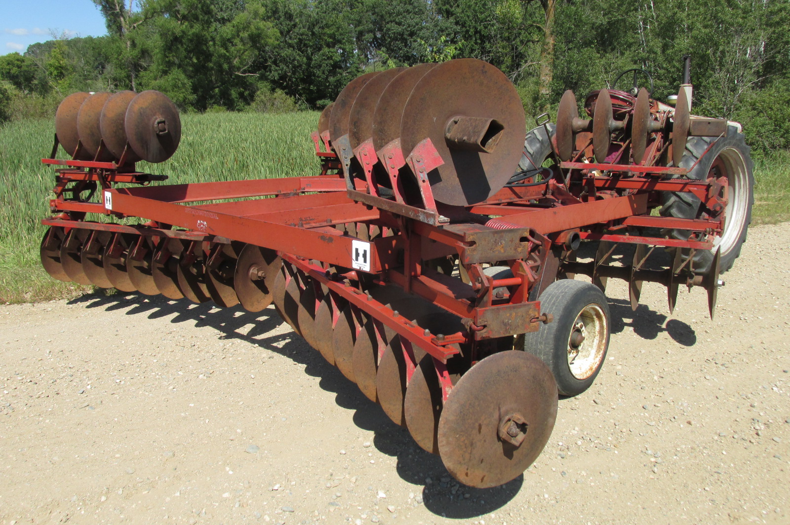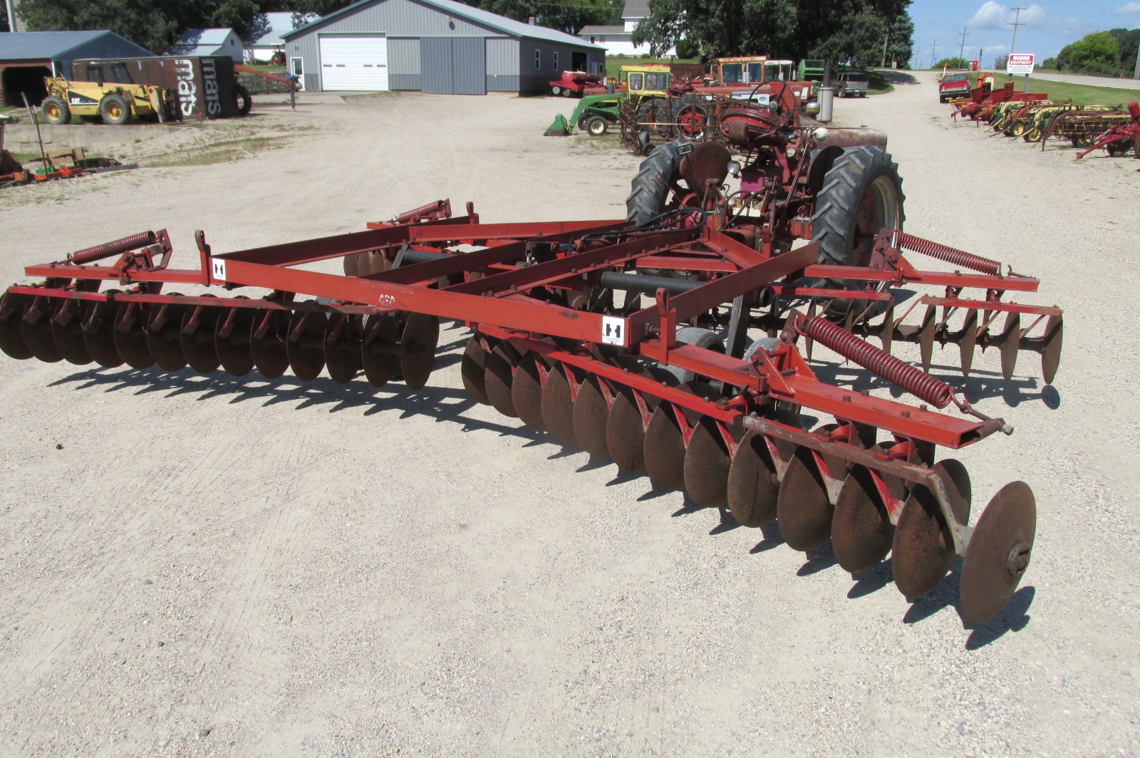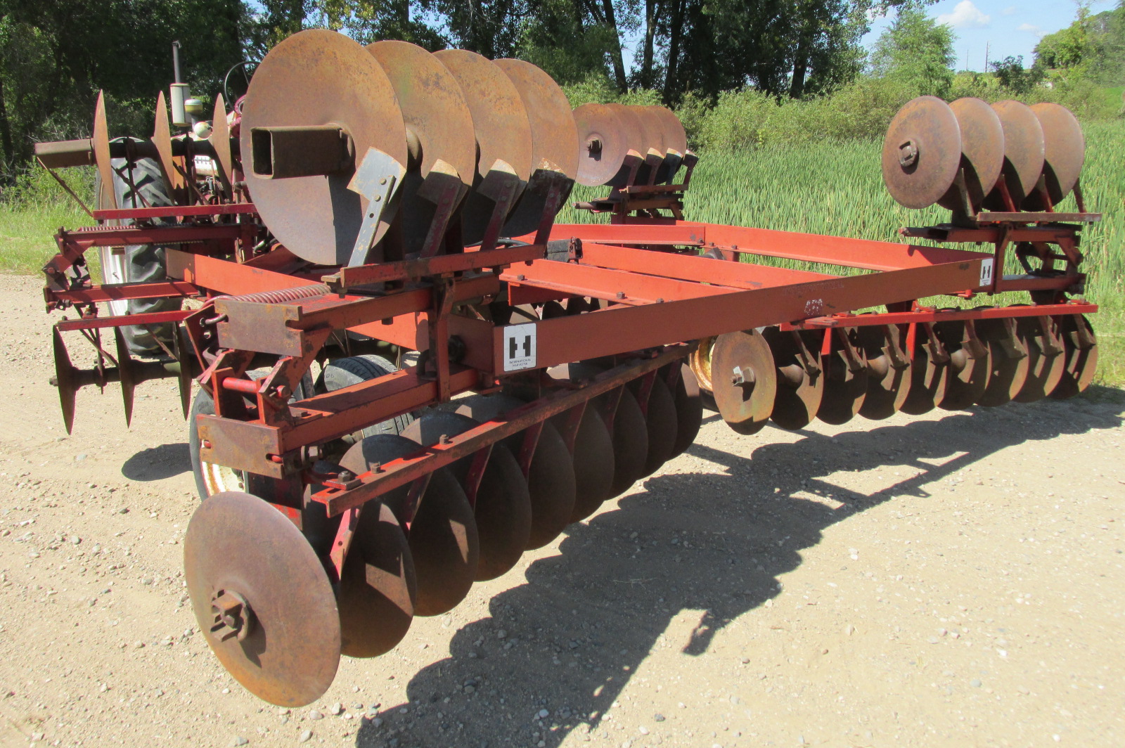 International model 470 19ft disc with foldup wings and dual wheels. Includes hydraulic cylinder.