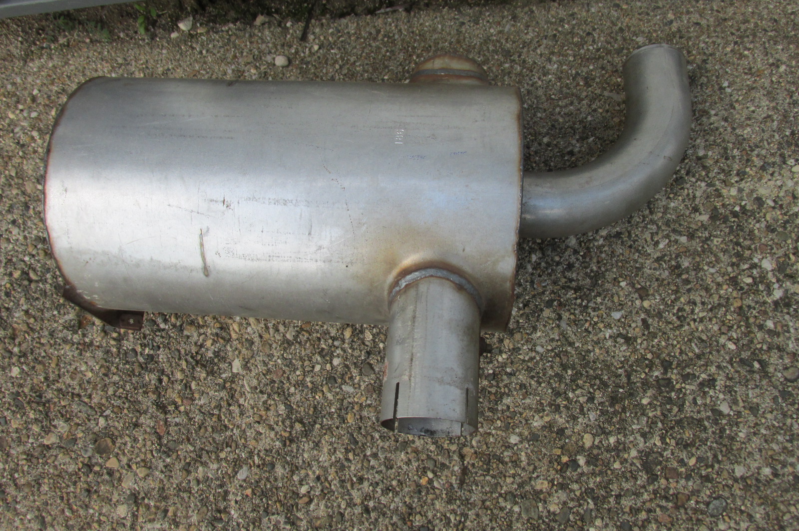 New under the hood muffler for either an IH 886 (non German) or an IH 986 tractor both with the D-360 engines.Also fits a Hydro 186.Inlet ID is 3 1/8".Outlet OD is 2 15/16"Part # is 131108C1.New is $550.49 at Case IH.Will sell for $450.New -never used,