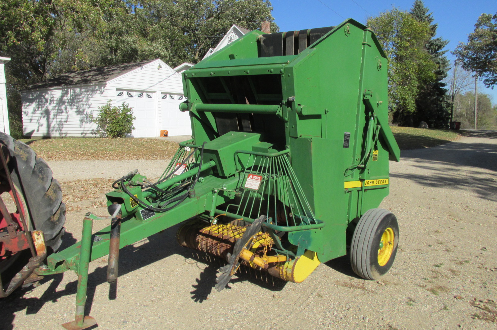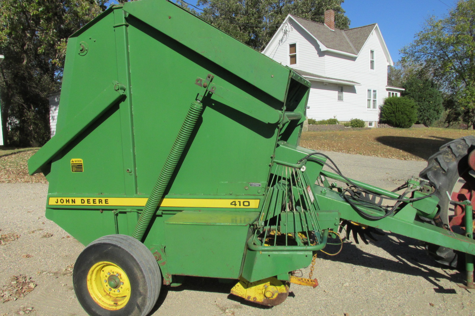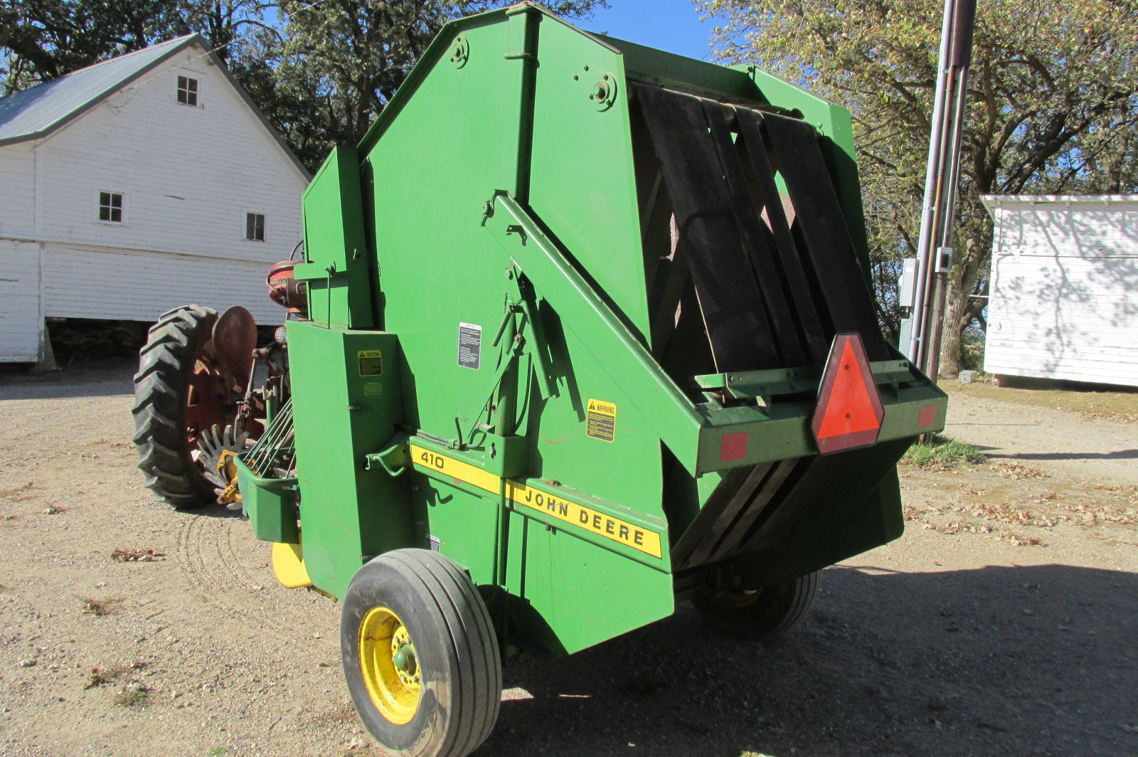 john deere model 410 round baler. Makes 4 foot wide bales up to 5 feet in diameter.