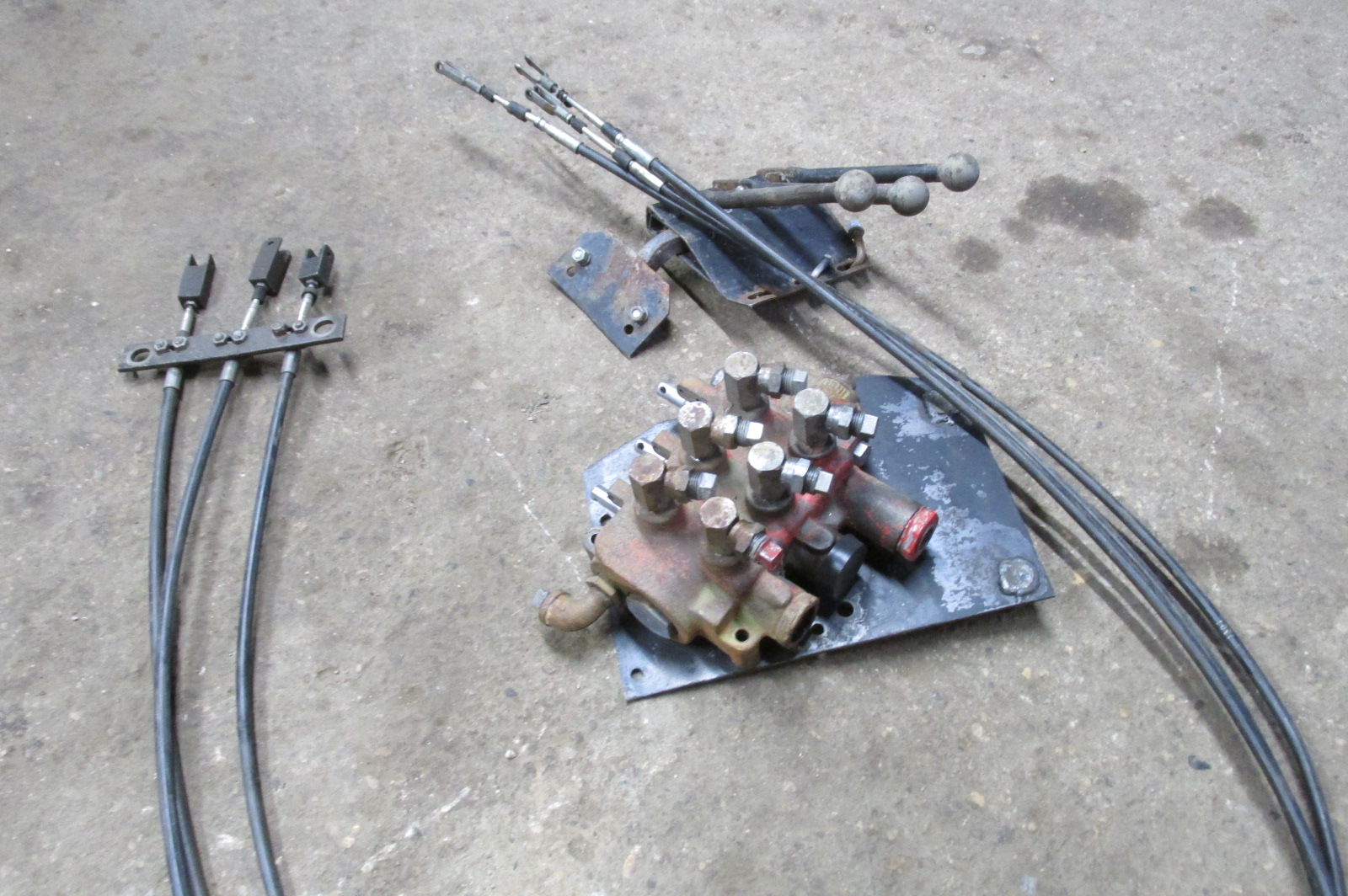 Gresen triple unit hydraulic valve with 9 foot remote cables and triple control levers.Allows you to locate hydraulic valve out of the tractor cab and have the levers only inside.Would work great for other applications as well.