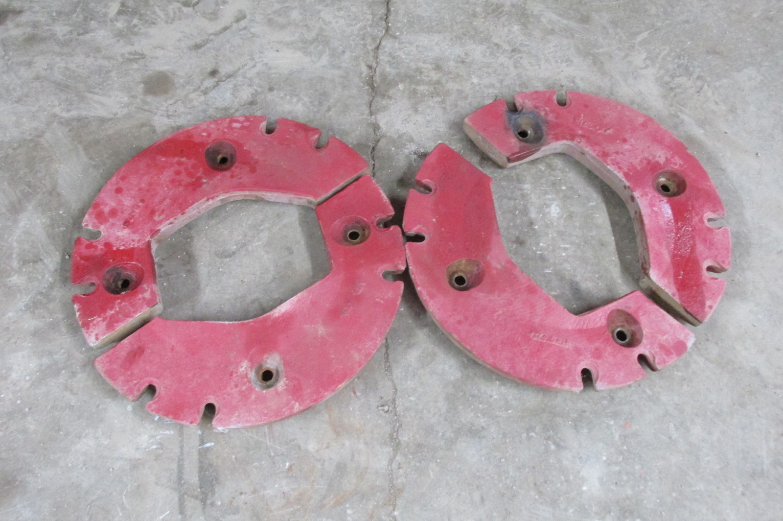 Set of split rear wheel weights to fit most IH tractors.Complete set of 4 halves.