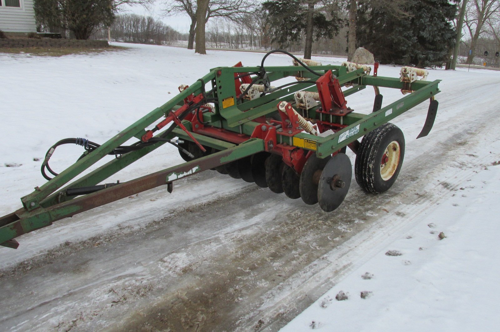 Glencoe 5 shank Soil Saver disc chisel.Very good condition.New disc blades.Good twist points.Greased up and ready for the field or your food plots.Nice hard to find small size for approximately 75 horsepower tractor.
