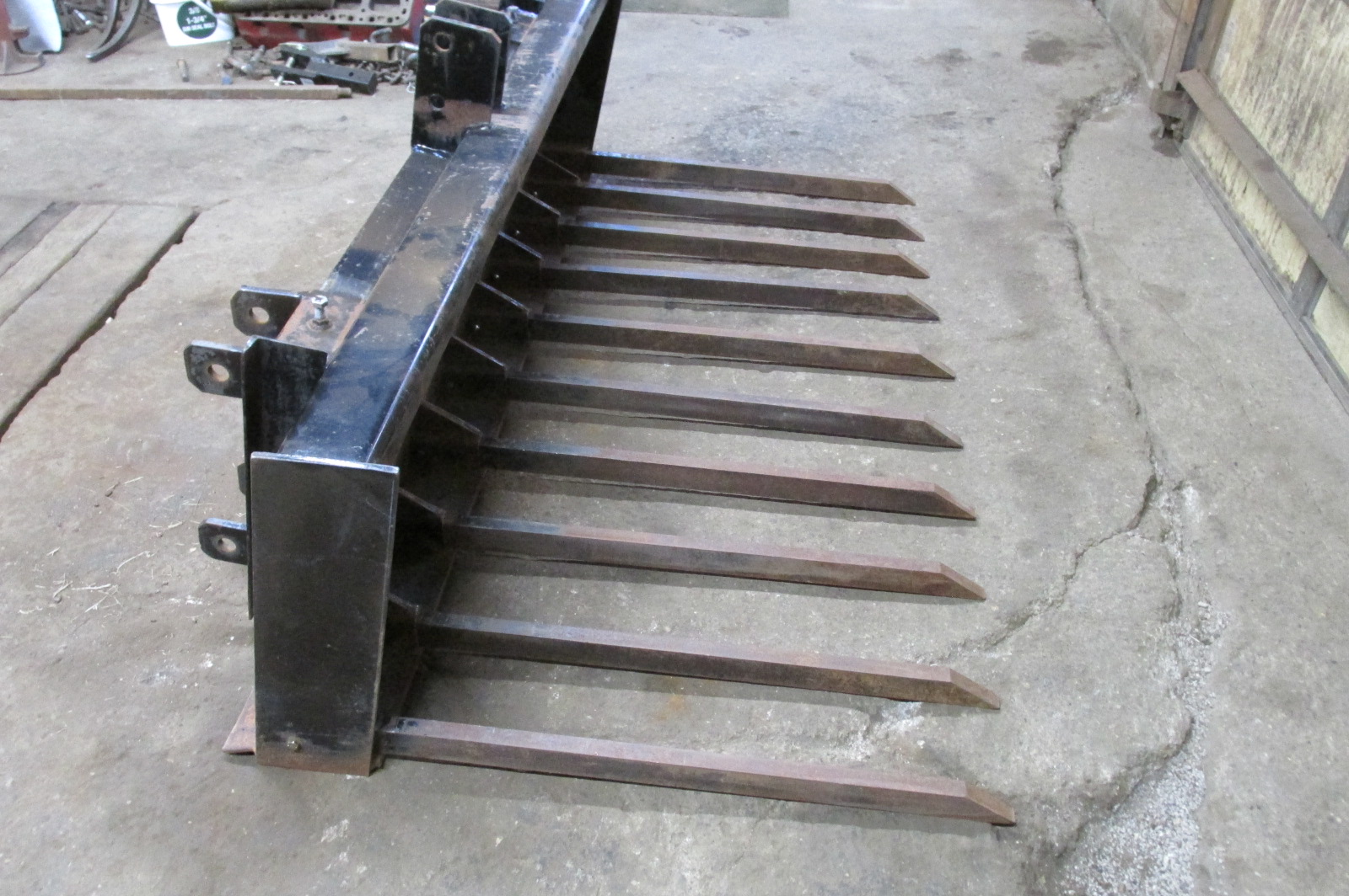 Newer heavy duty 6 foot Manure/Hay/Tine bucket for a hydraulic tilt loader. Universal mount - adjustable to fit most loaders.