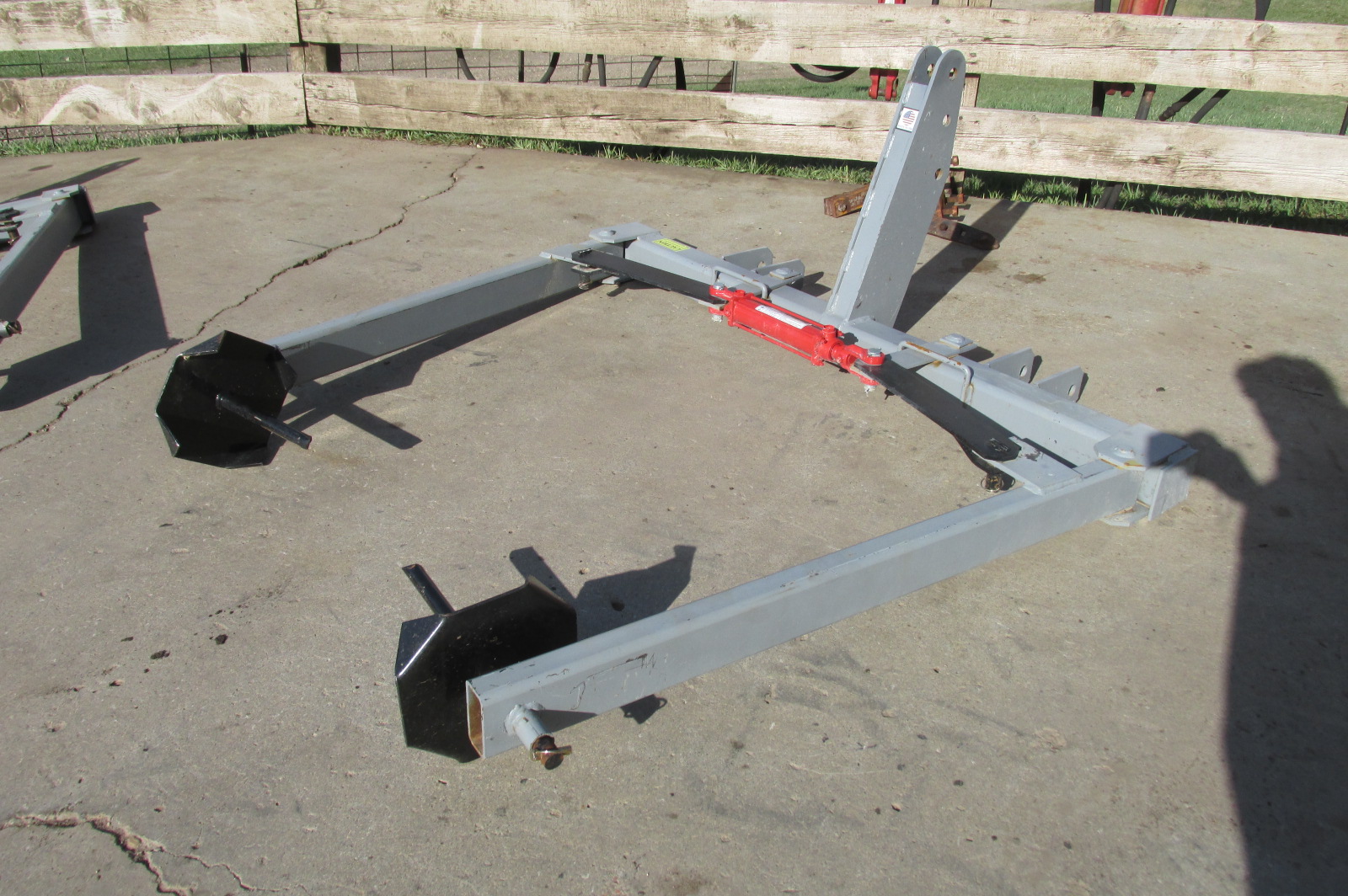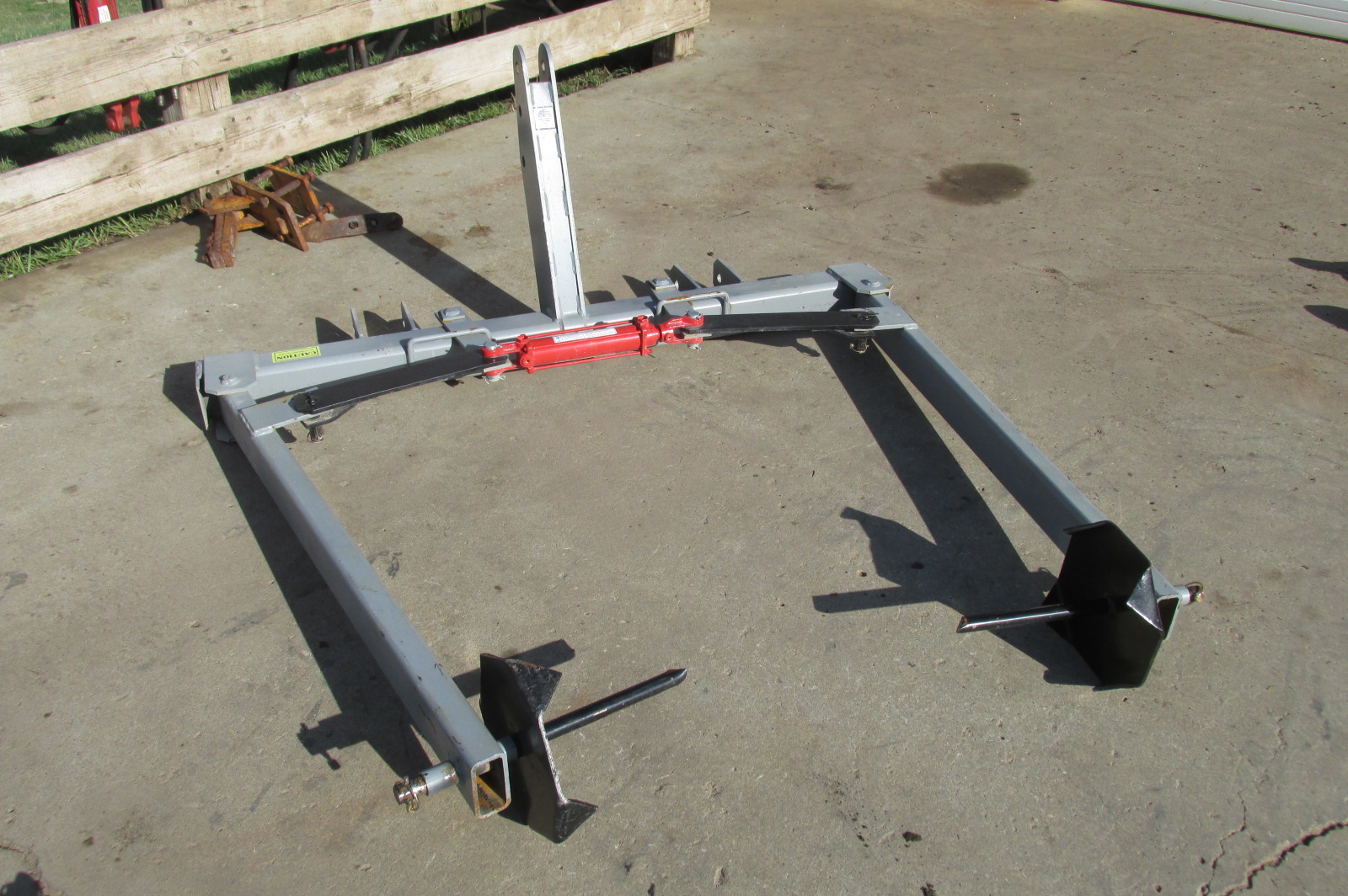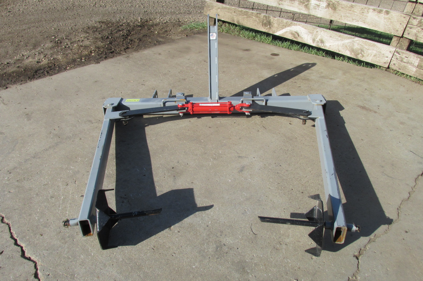 New 3 point big round bale unroller with hydraulic cylinder.
